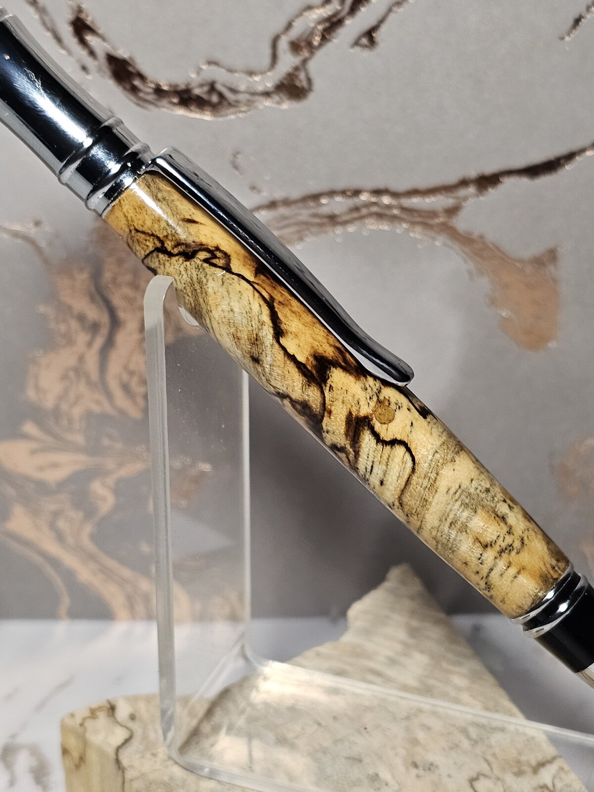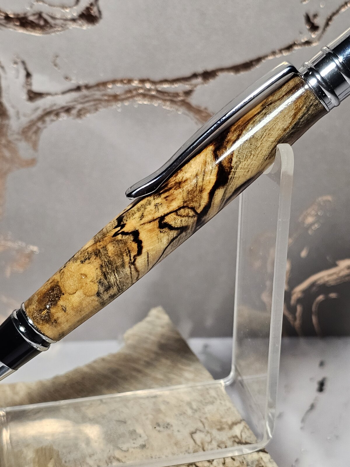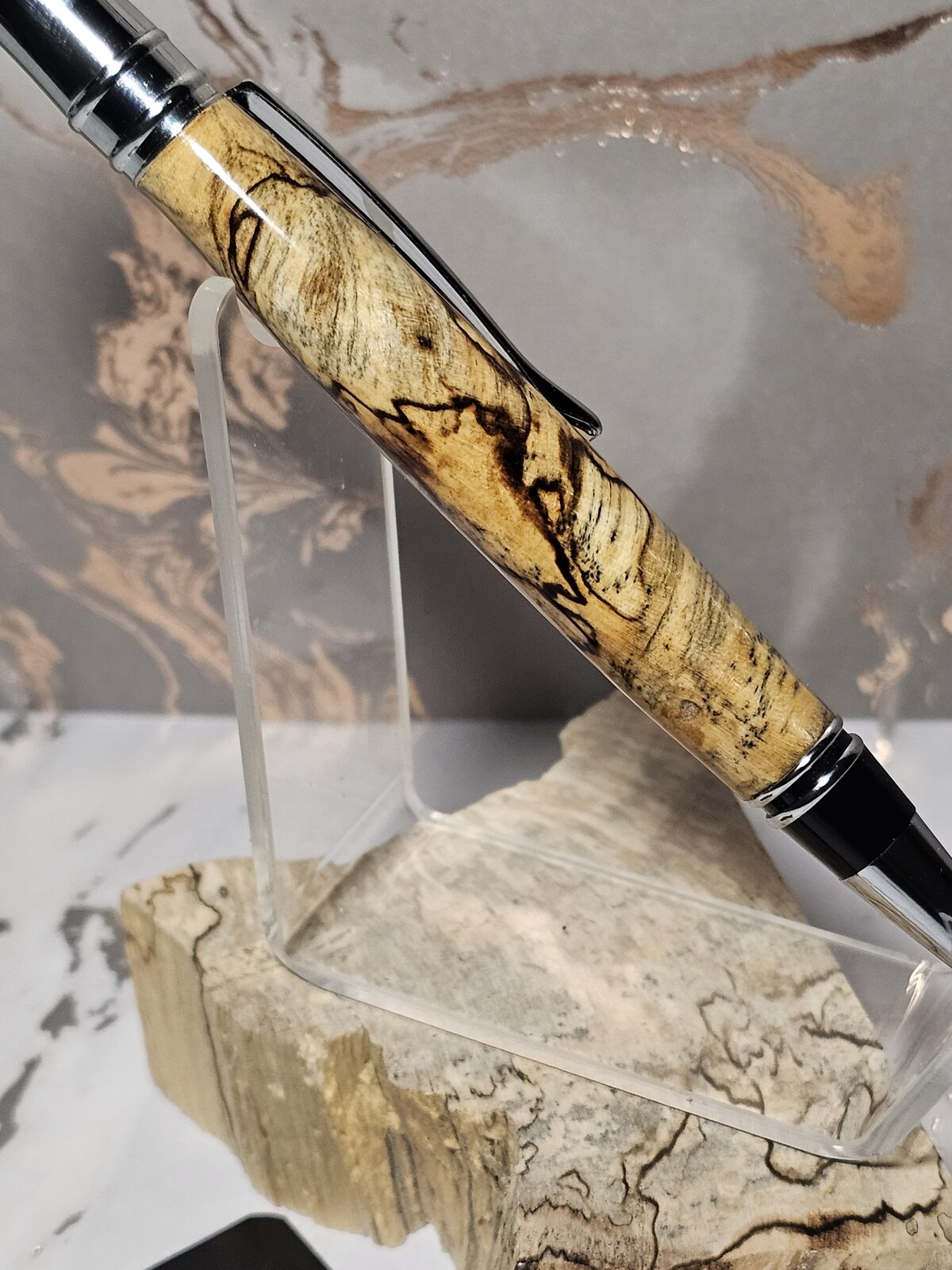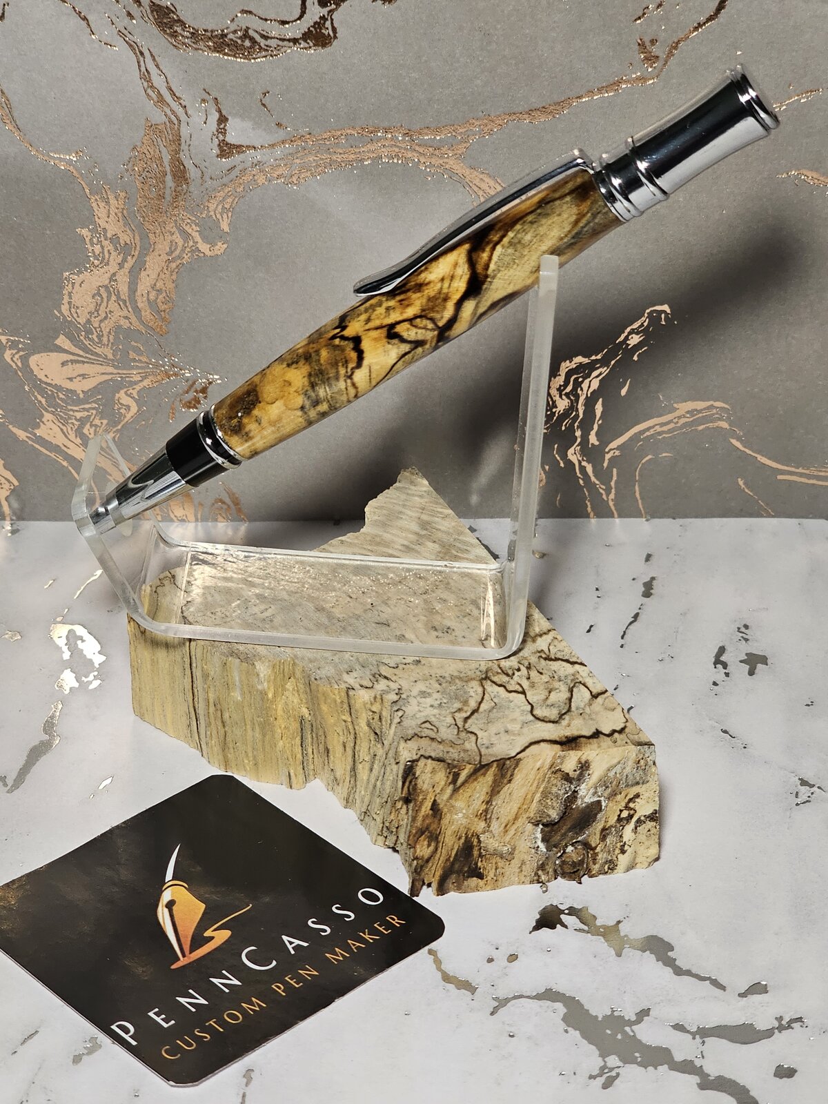 The wood that the pen is sitting on, it's what I made this pen from.