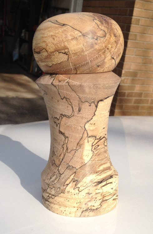 I won this piece of spalted Pecan on eBay some time ago. It's been sitting around drying. I finally got to it today. The pepper mill still needs the hardware installed and a finish applied. The top is a little flat because there was a big grub hole I had to turn off. Still looks good though.