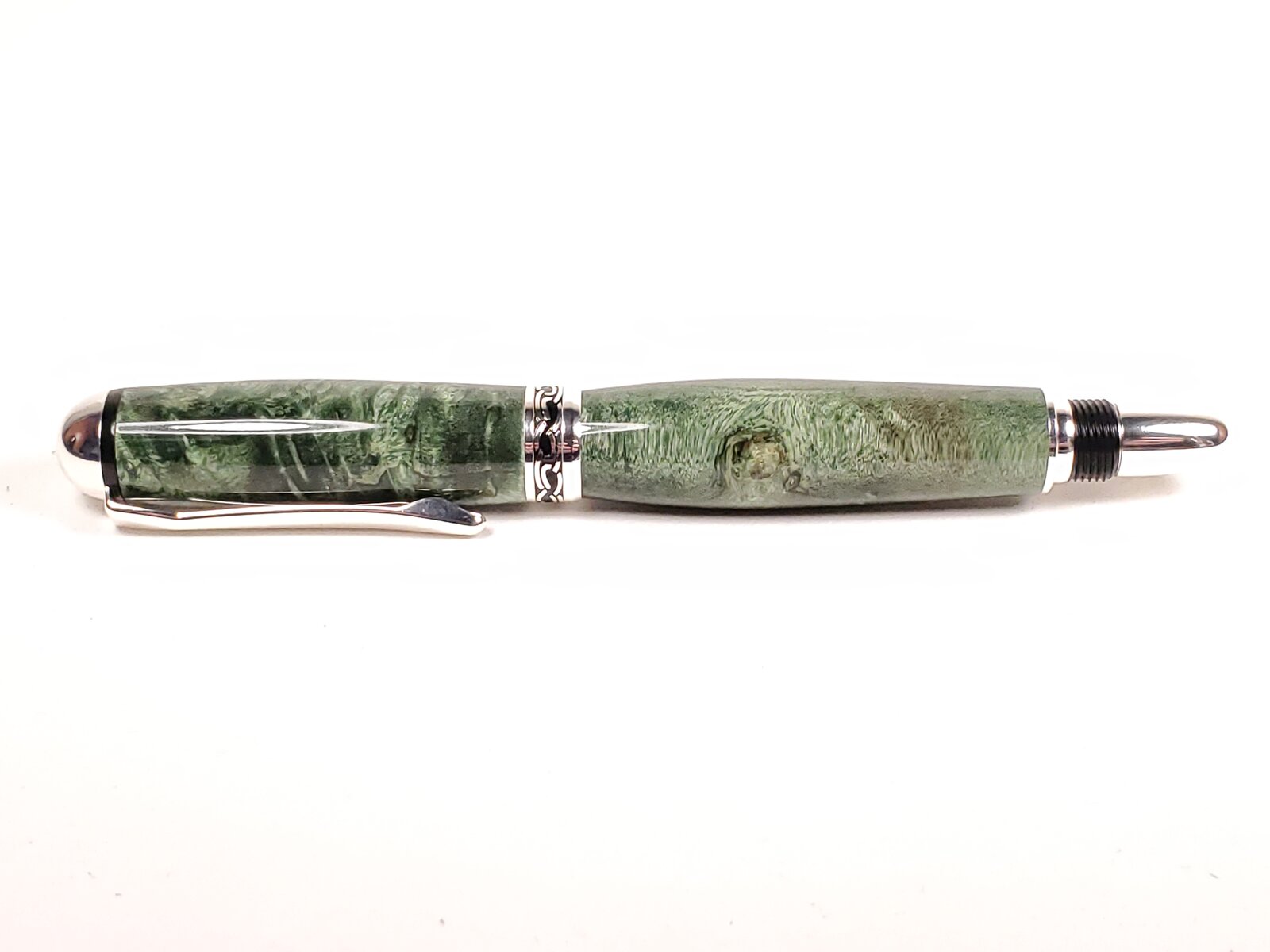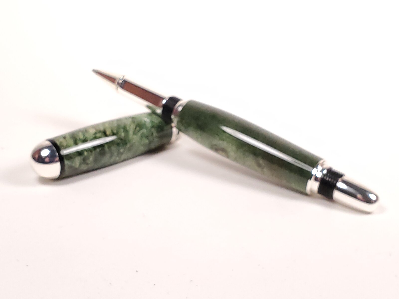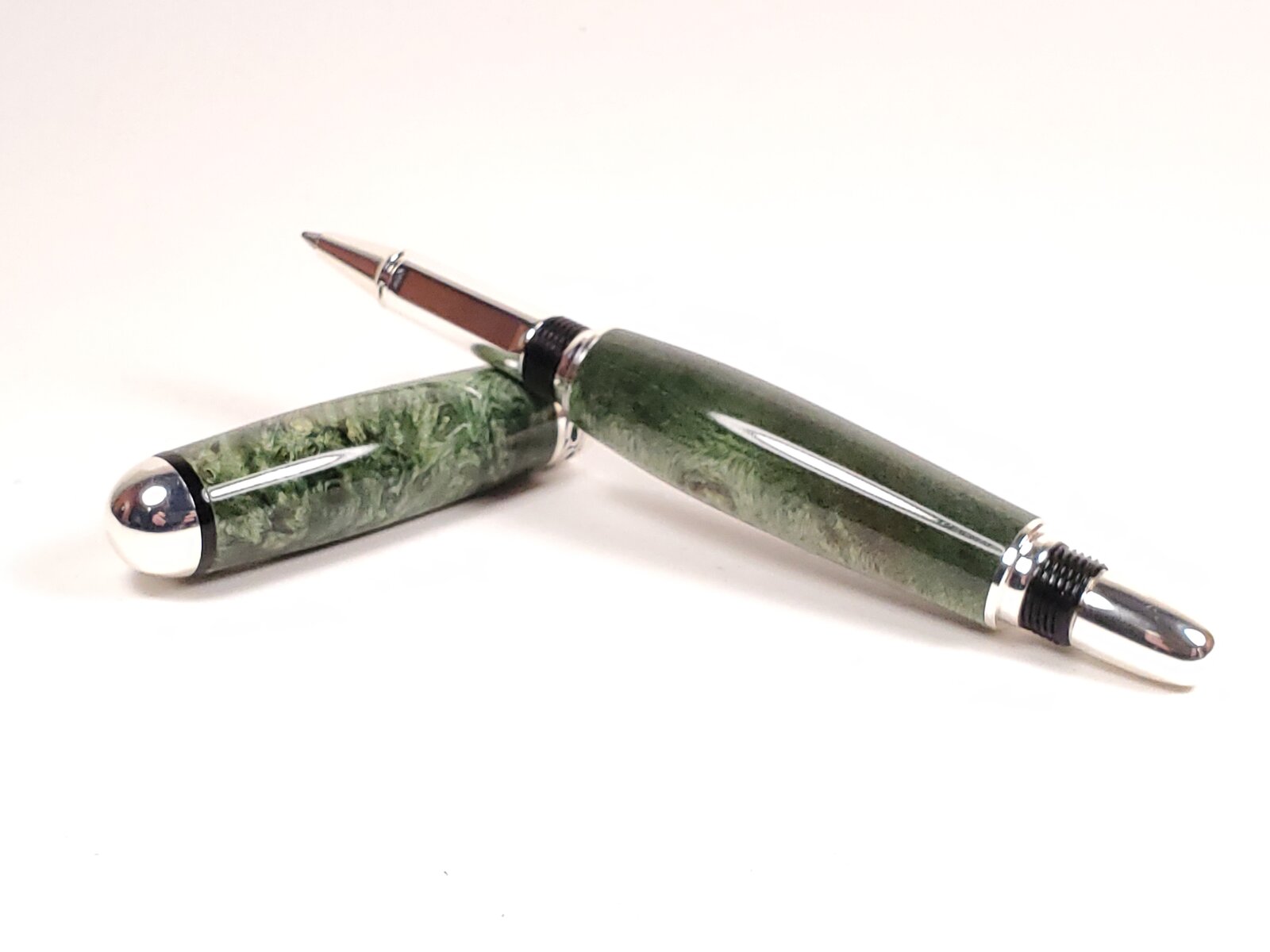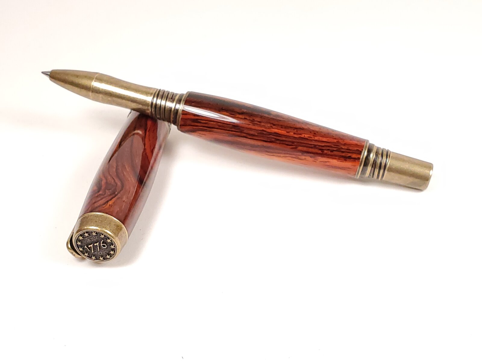 Box Elder and blond buckeye on silver Sedonas. Cocobollo on antique brass Jr. Independence. Faux mother of pearl on satin silver Cigar.