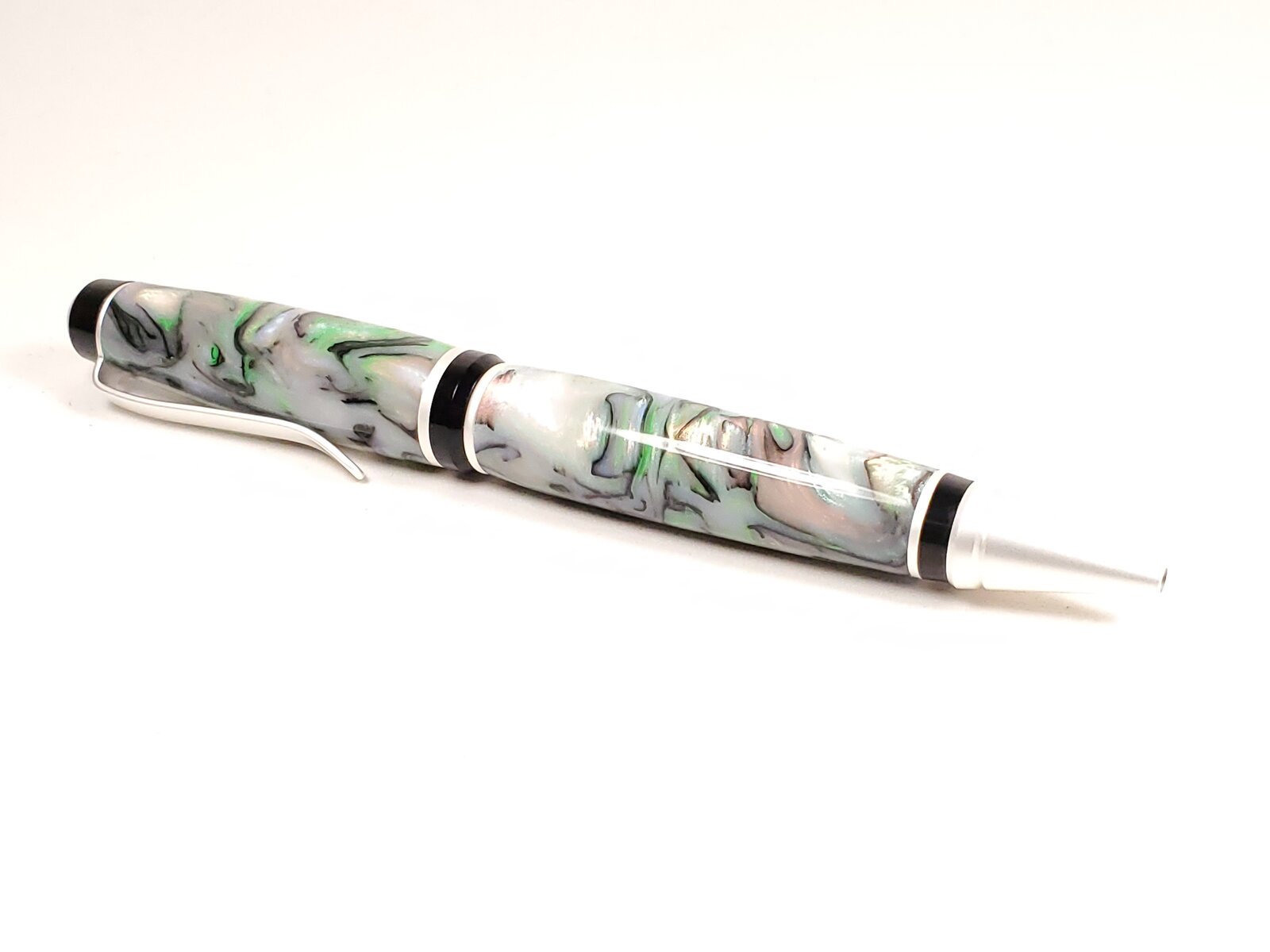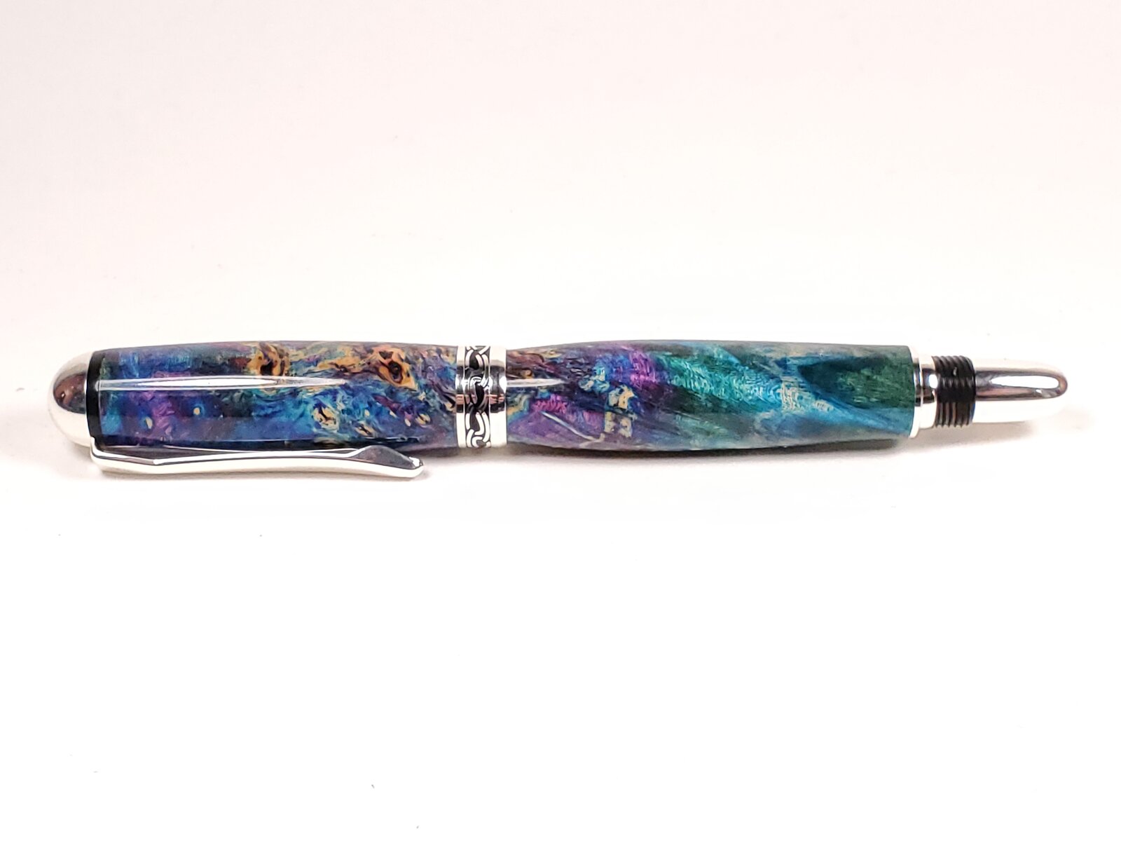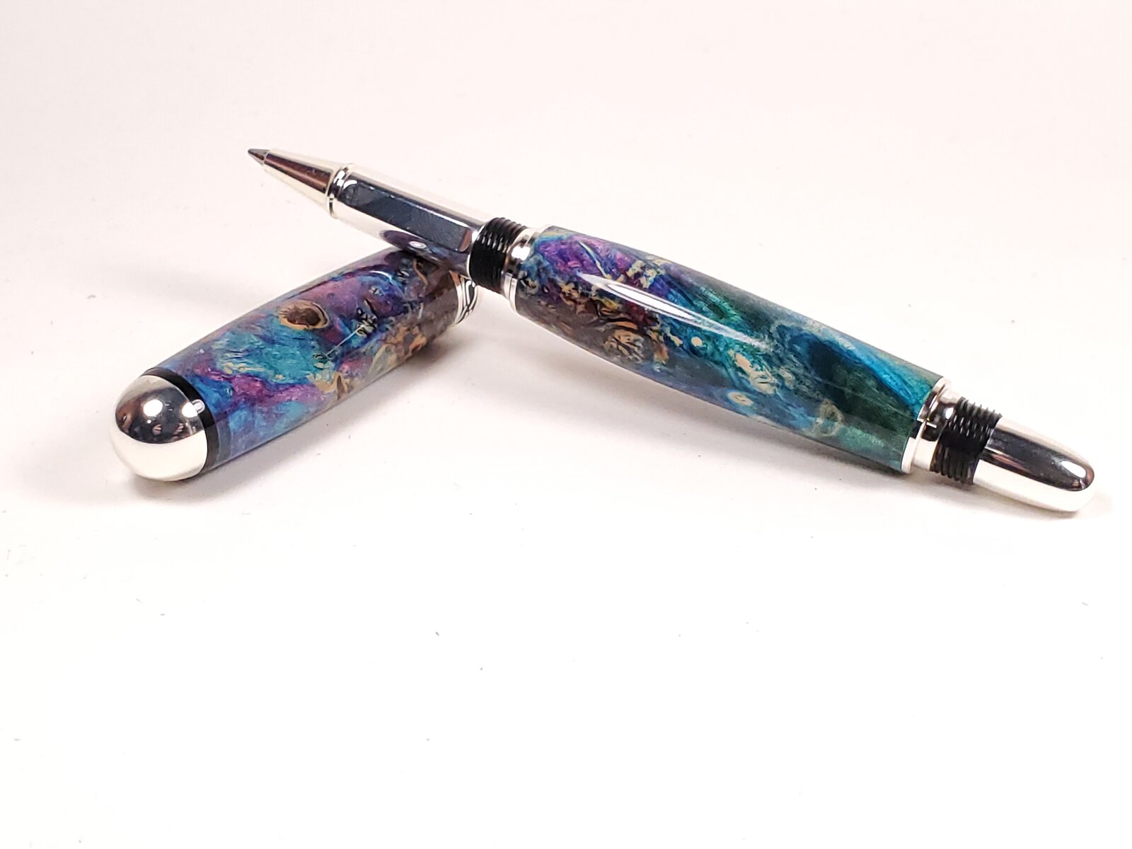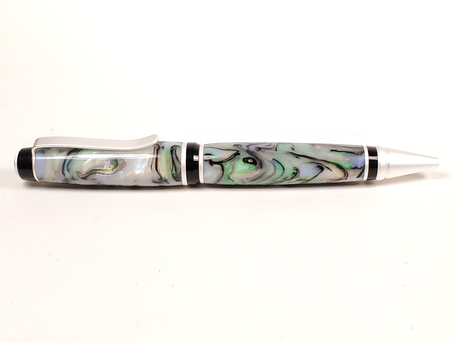 Box Elder and blond buckeye on silver Sedonas. Cocobollo on antique brass Jr. Independence. Faux mother of pearl on satin silver Cigar.