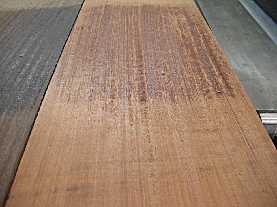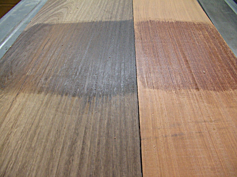 Now you mention Bubinga and Wenge. Both these woods are highly splinter oriented and if you get a splinter working with them, get it out right away. It will get infected quickly. They are also woods that the dust can be a hazard so be warned. I posted a few photos of boards of each. The one on the right is bubinga and it is more reddish in color and streaks of lighter grains. The one on the left is Wenge and it is darker with more pronounced light streaks of grain. These are not sap wood. I also included a quick shot of each board with some denatured alcohol on it to resemble a finish somewhat. I did not want to contaminate these boards because they are not cheap and I use them for other projects, but you get the jist of the look.