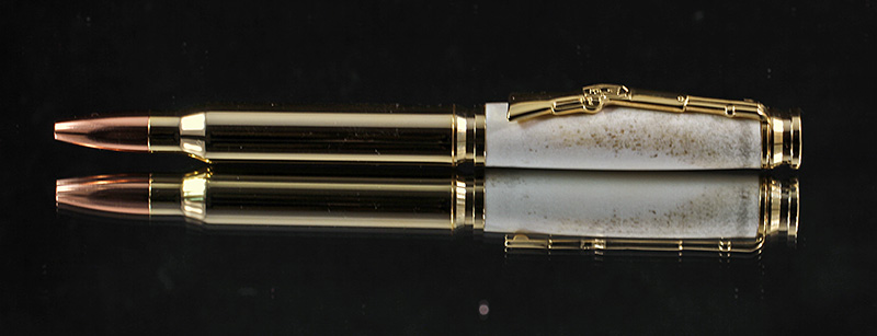It is a Gold Ti Le Roi paired with a once fired .410 shell. He told me he ran into a few challanges in making me this beauty but he did a fantastic job as far as I am concerned. My pics leave a lot to be desired but here a couple of quick shots for everyone to have a look.