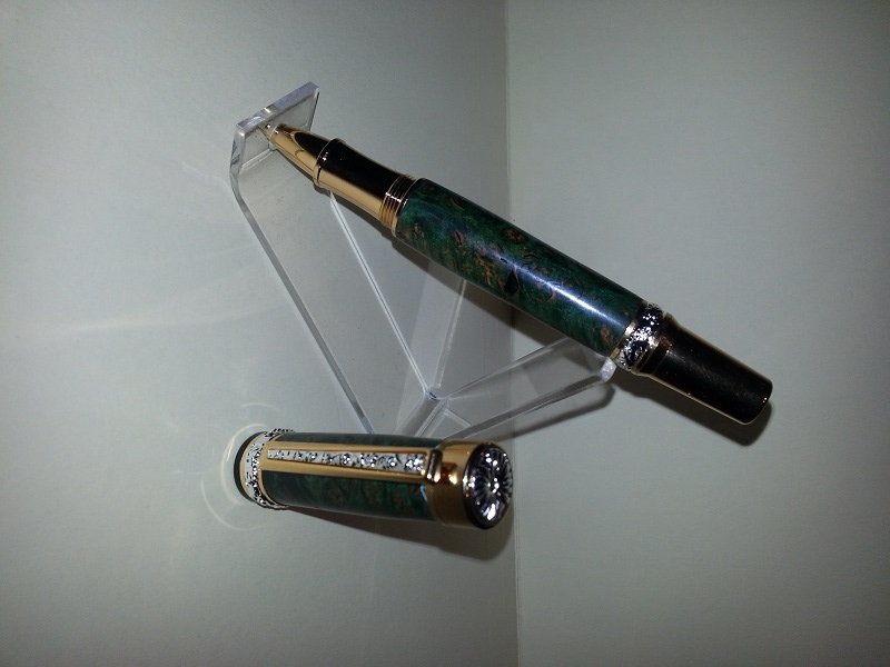 Turned this for myself but it is too nice to carry in my pocket so I keep it in my case to use as a sales sample. I was really surprised with how this blank turned out! Love the green!