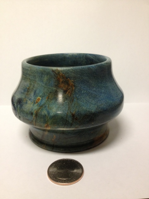 Wonderful bowl! Great shape and the blue dye really made the wood looks more attractive, very pleasing to the eyes. Very nice finish as well. Great job!