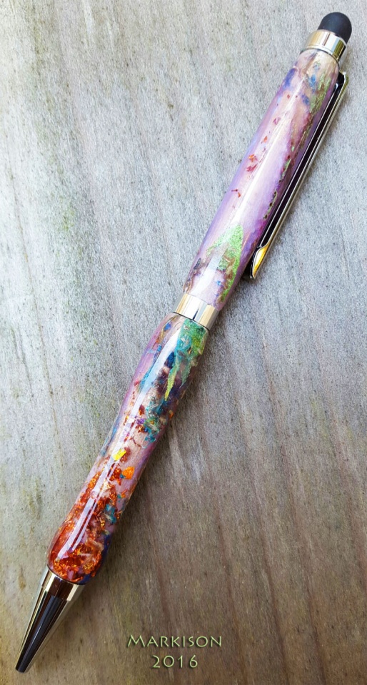 This little baby was born of humble origins this morning - burlap was Cactus Juice-vacuum-stabilized, coated with pigment and metal flakes, cured, cut into strips, pressure cast at 50 psi, etc. - more detail in this thread: