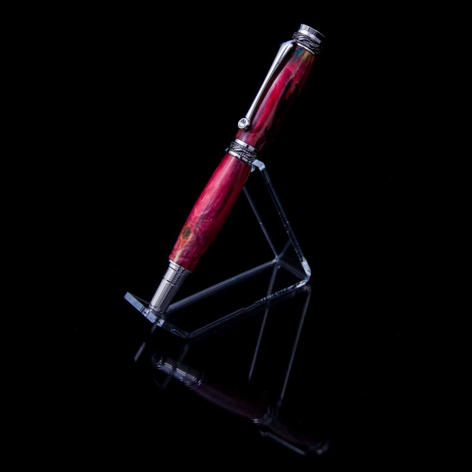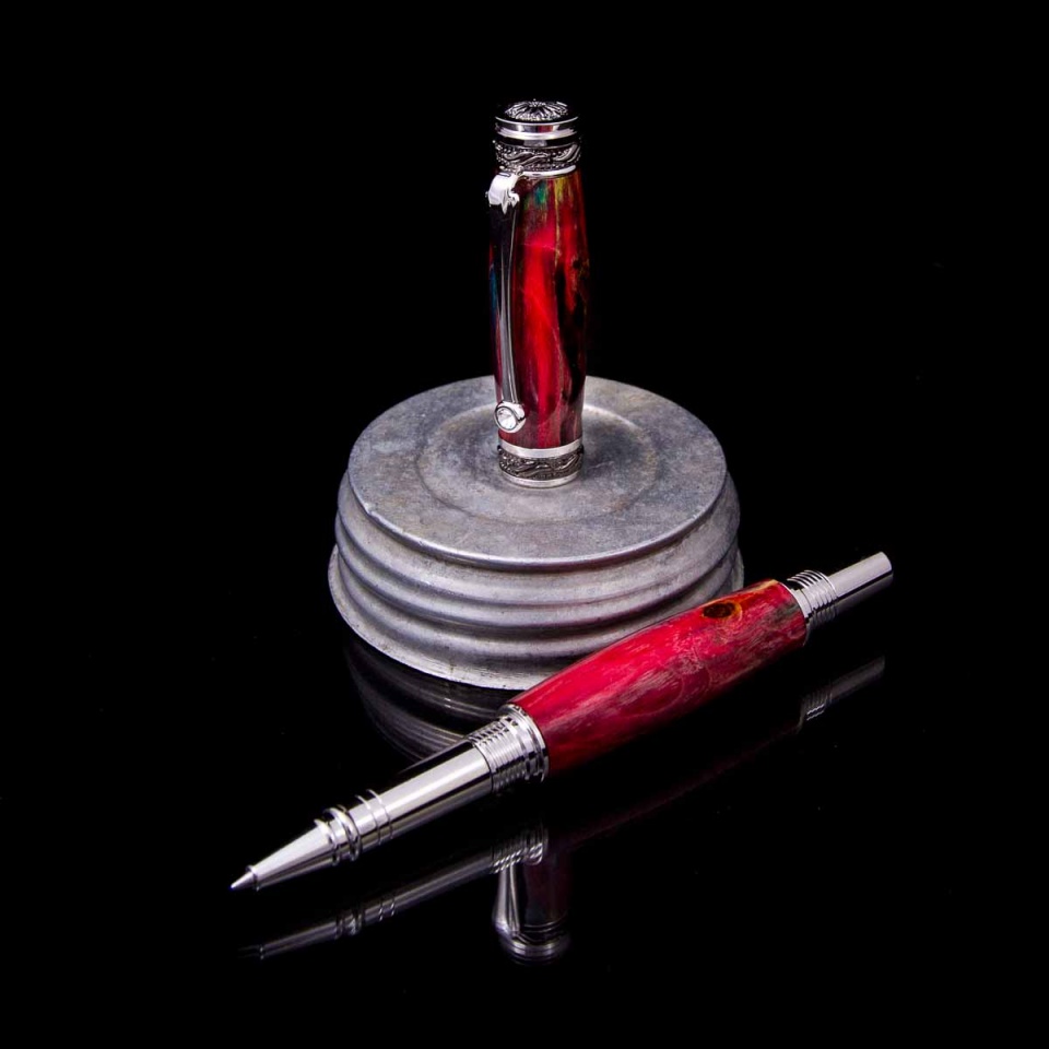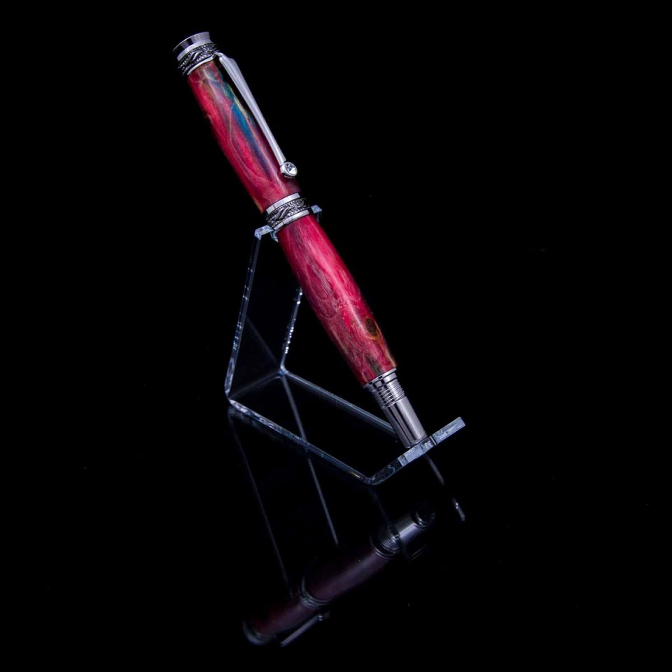 First test piece of a bunch of maple blanks I collected a few weeks bank. Three stabilization cycles of increasing length and vacuum - yellow, then blue, then red. I never know quite what to expect until I do a test or two on a batch of wood.