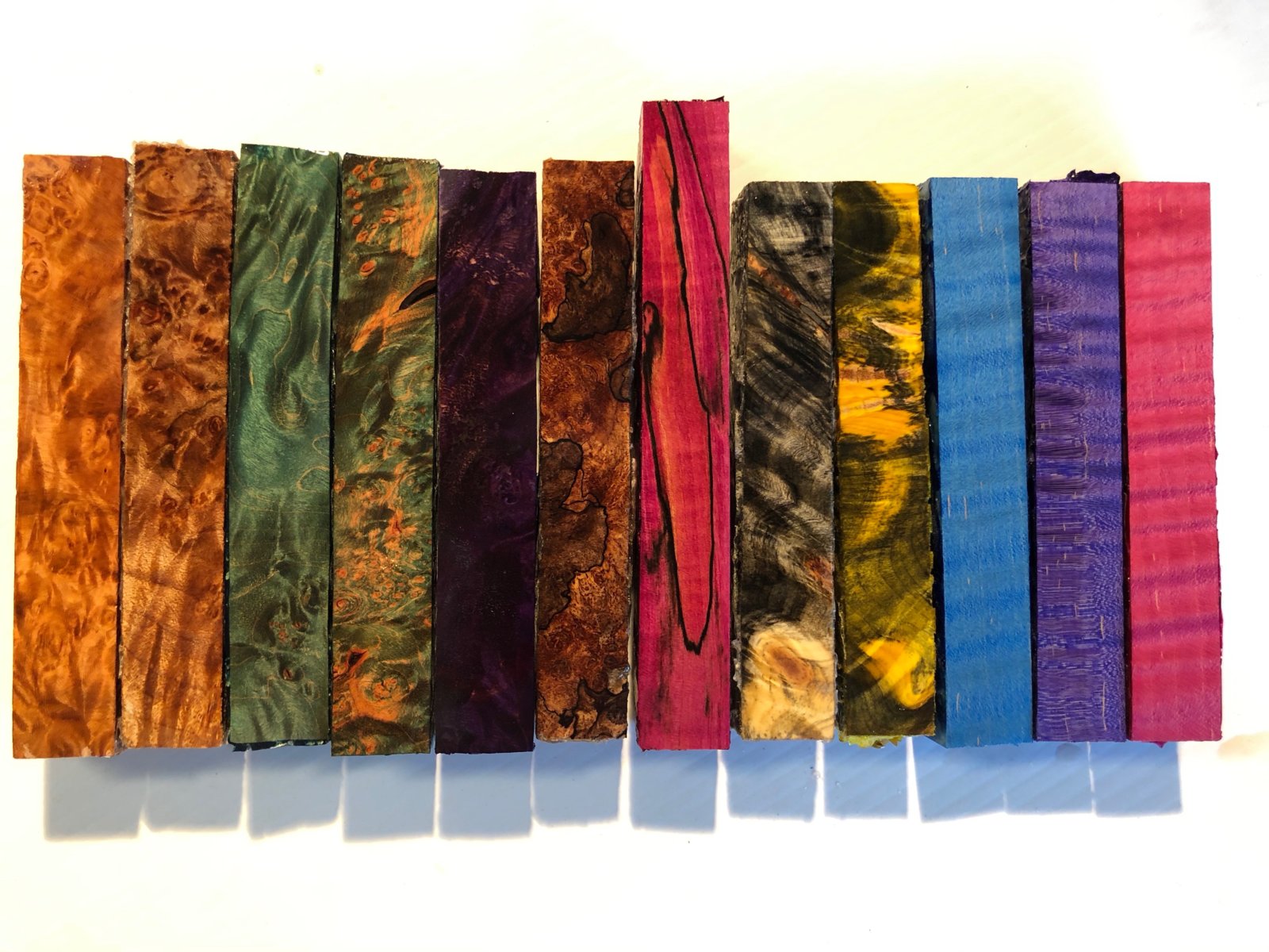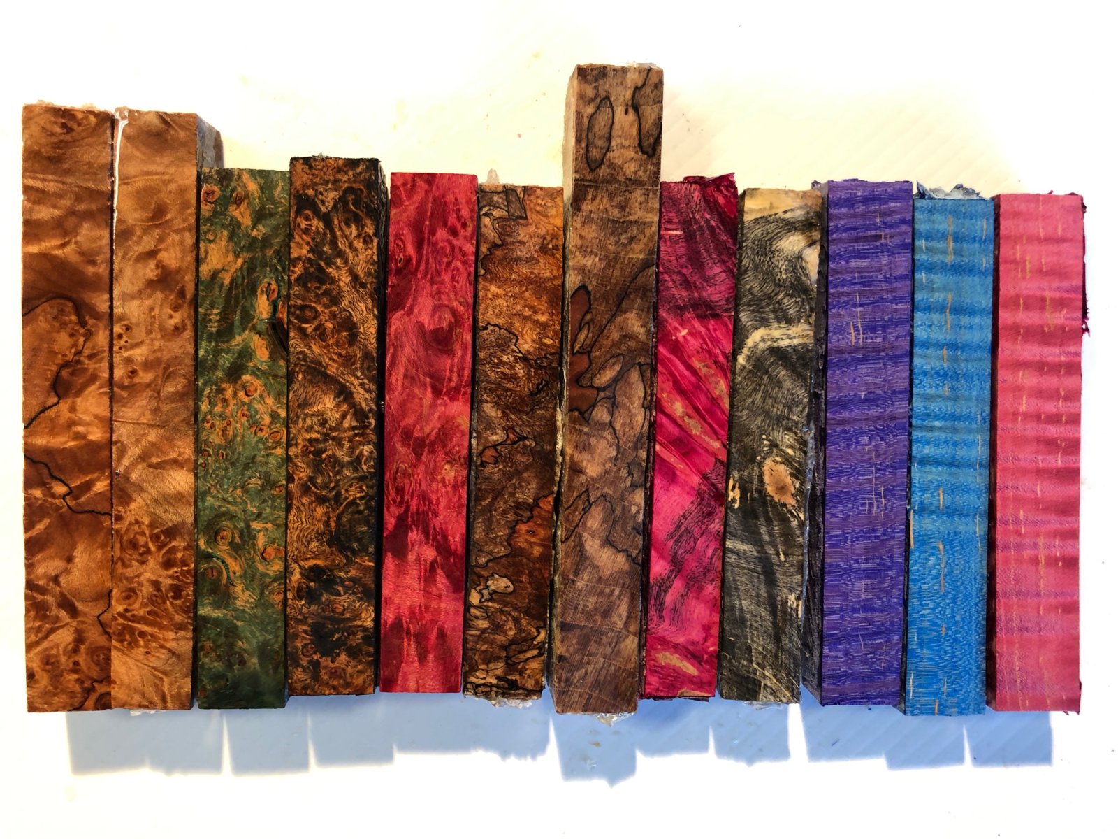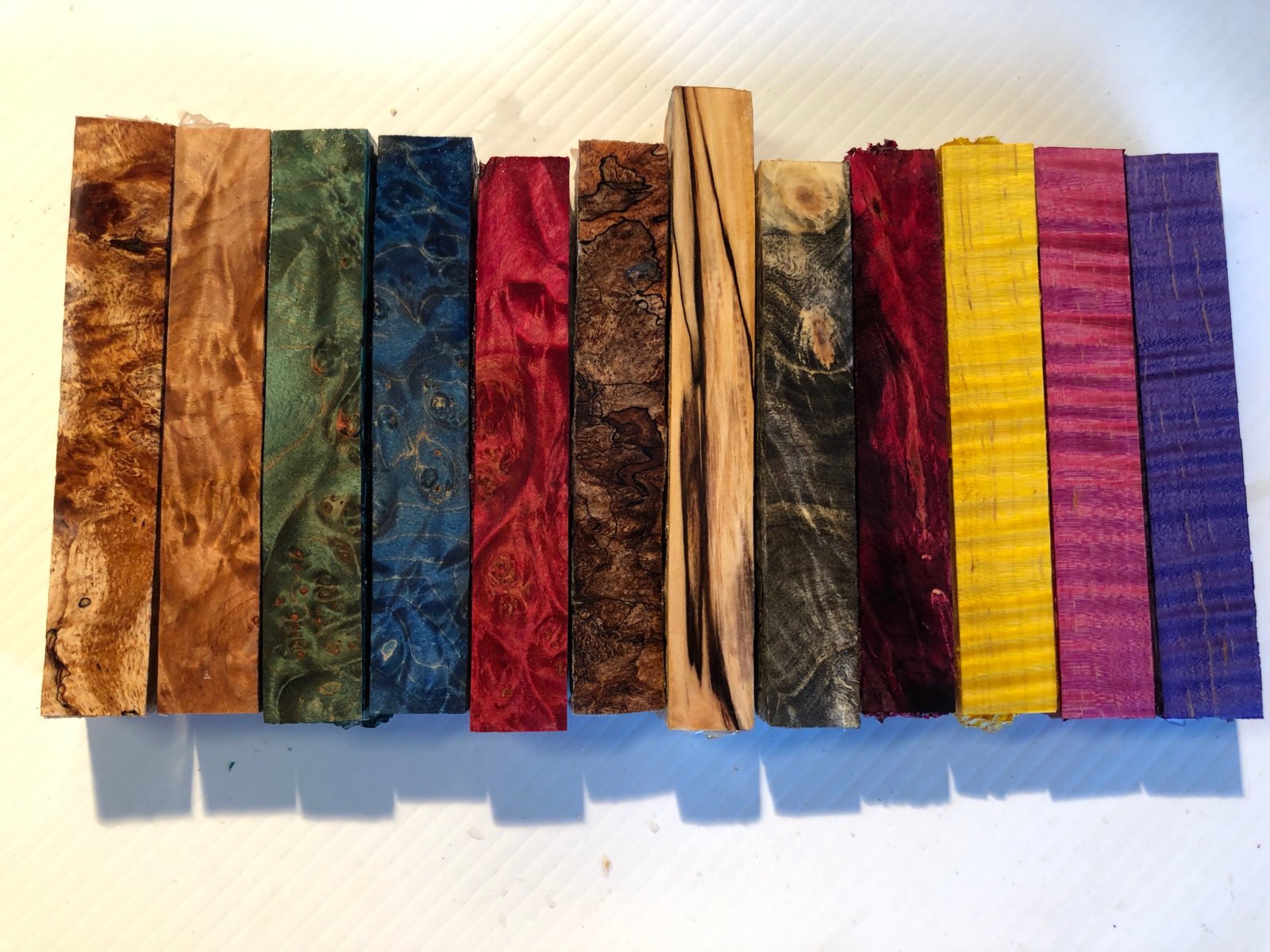 Last week I had a customer ask if I would sell a set with one or two pieces of each kind or color. A "SAMPLER SET" of stabilized wood. That way you don't have to buy 5 or 10 of one color. Well.... I figured others might be interested- So here are some fun sets: