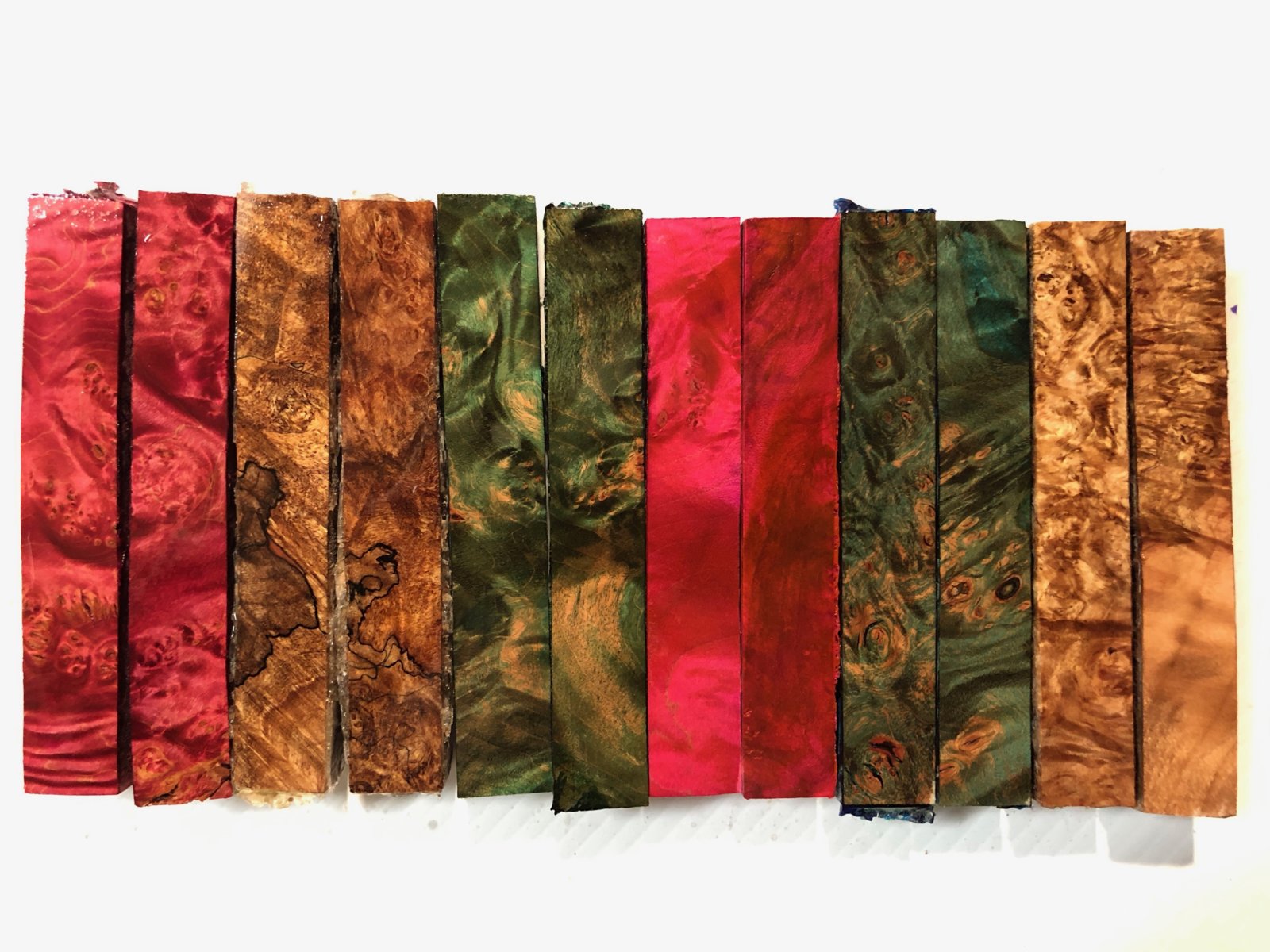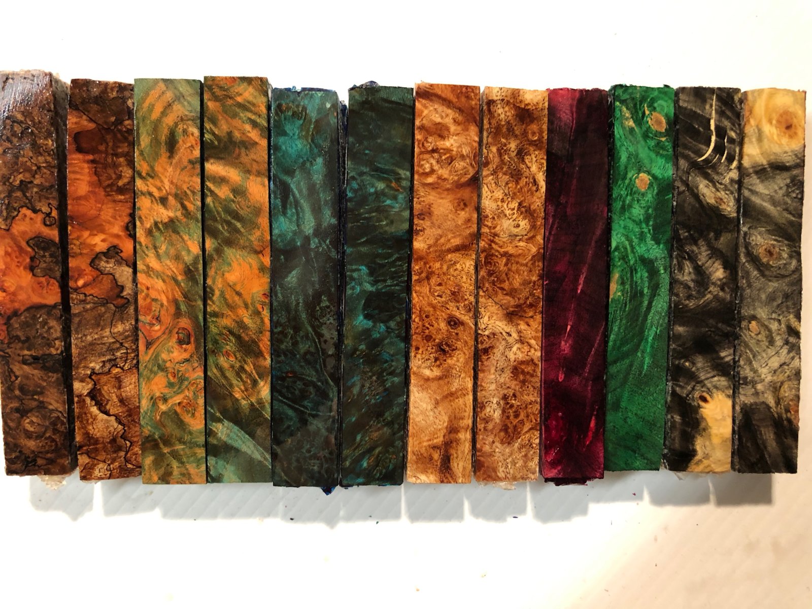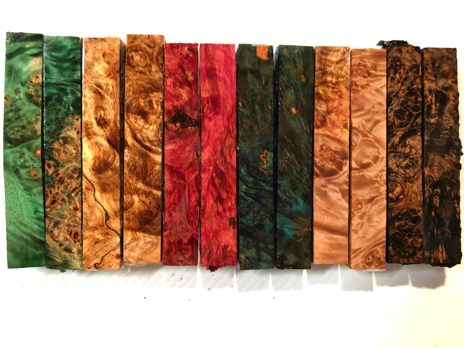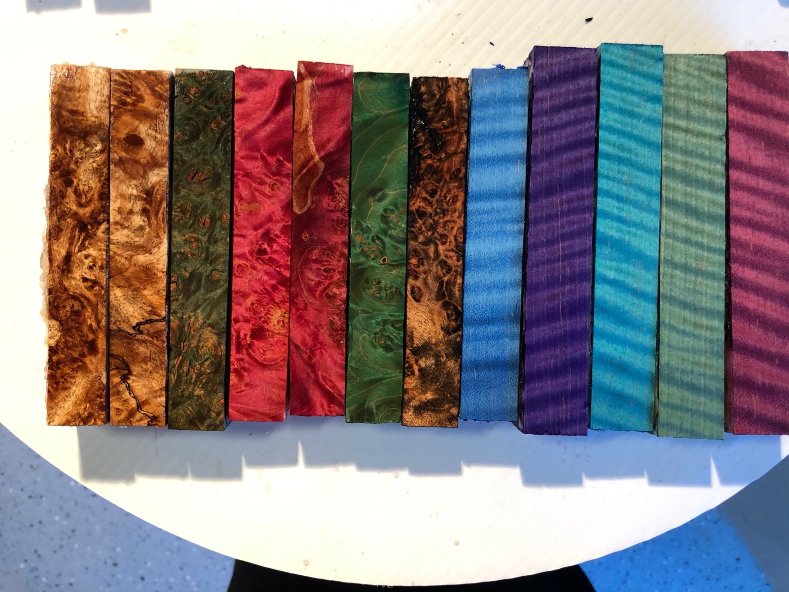 Last week I had a customer ask if I would sell a set with one or two pieces of each kind or color. A "SAMPLER SET" of stabilized wood. That way you don't have to buy 5 or 10 of one color. Well.... I figured others might be interested- So here are some fun sets: