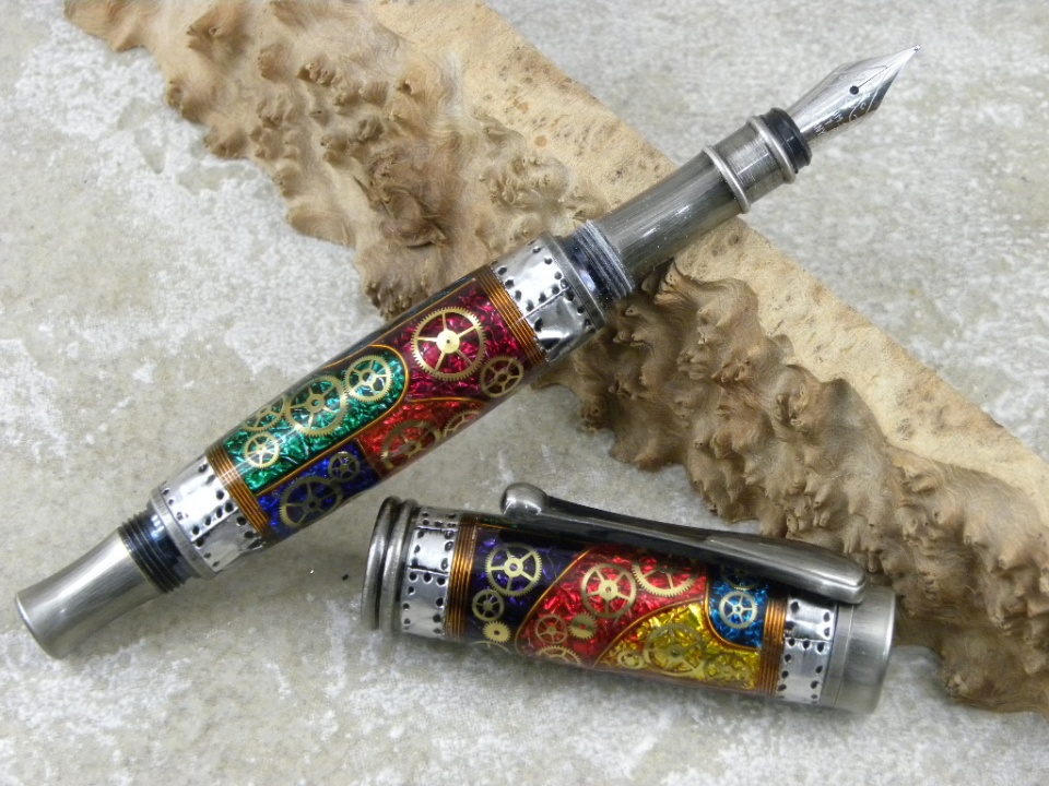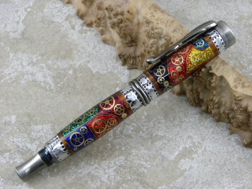 It is my Steampunk+ design with each section painted to create a Stained Glass appearance, after all Steampunk is Victorian Era and i think Stained Glass Windows are also from that Era (well i am sticking to that anyway:biggrin