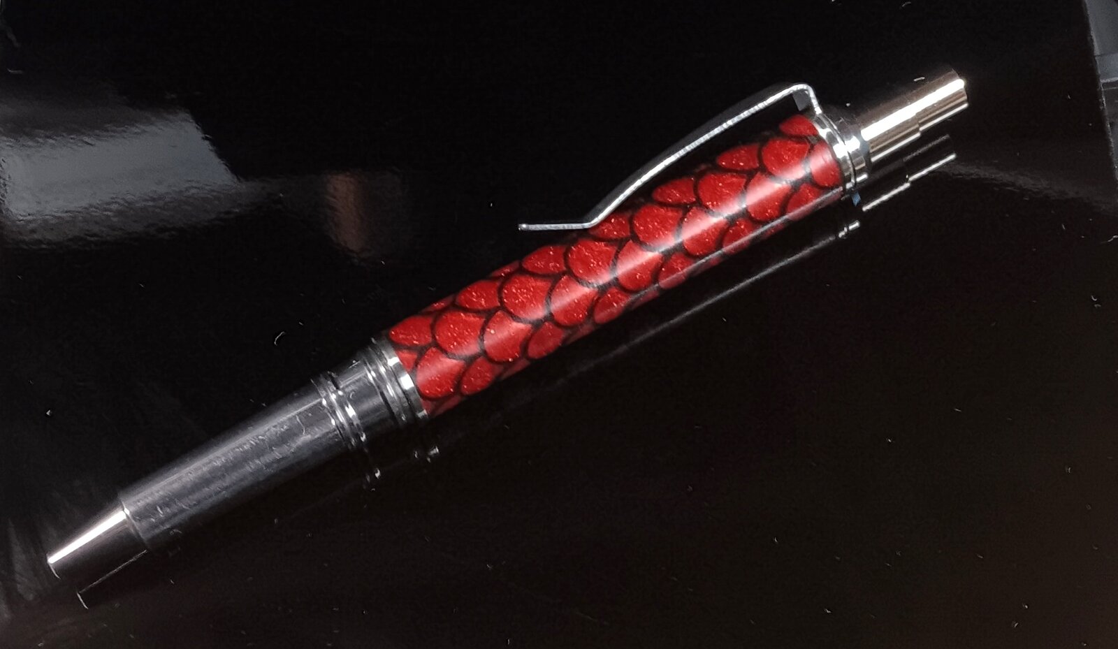 I made a couple recently, one for my wife, one for her Christmas drawing, and a couple more just cause I could. The blue striped pen is the one I gave my wife for her use. The scale pattern is for a co worker of hers that she will give them after Christmas when she returns to work.