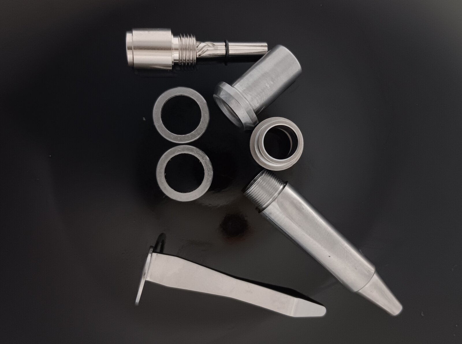 The pen dimensions as manufactured has a .440 at the nose cone end. and .478 at the clip. I decided I wanted a larger body and ran off the the Hardware Store to buy some stainless steel washers. I bought bopth 1/4 and 5/16 washers, Std. 1/4 washer were perfect for what I wanted. 5/16 are to large inside diameters by a smidge.