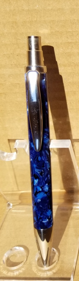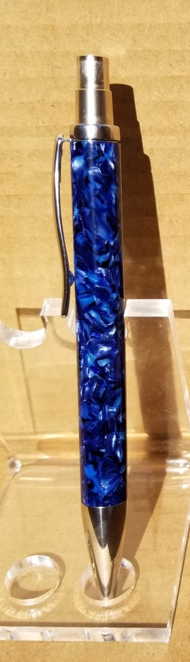 I finally got around to using stainless steel for the nose cone and finial adapter. The body is vintage sapphire Cebloplast which is really beautiful. The clip is from a Long Clicker kit. The clicker is the Schmidt clicker.