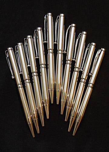 Your thoughts. I did this set as gifts for an executive at a local company that builds stainless steel products for Johnson & Johnson. Made from Bar stock stainless steel with Rodium Slimline Kits. For my equipment these where a chore to complete.