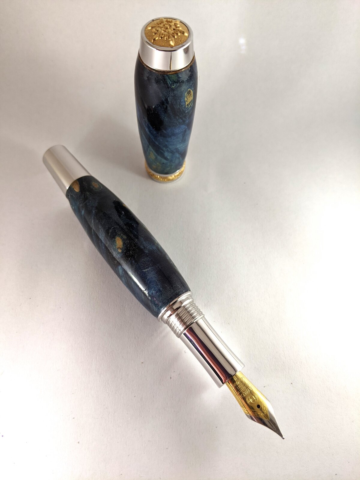 Thickest turn I have done, most holes to deal with on a burl, first Dayacom kit build, and first time using segementing skill (as a fix after cutting too much blank off).