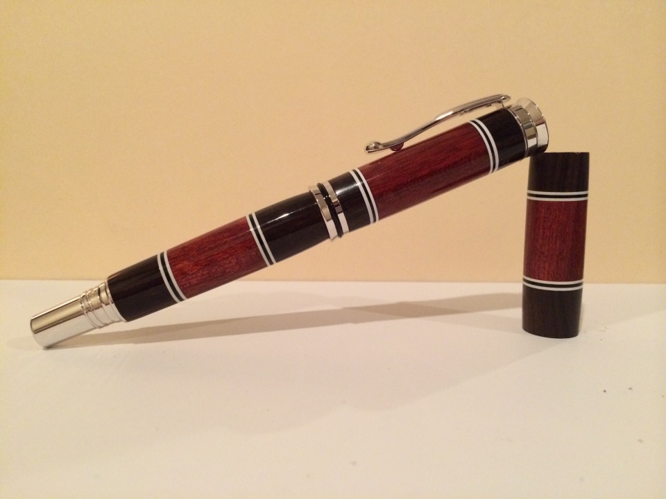 So how does it look? First segmented pen.....African Blackwood with Bloodwood on a Jr a Retro Rhodium kit.