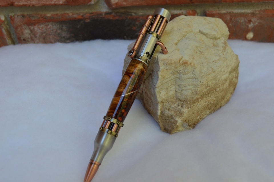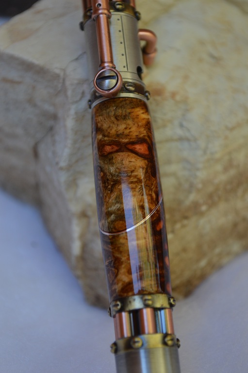 I wanted to try this kit and I must say - it is really interesting. The Afzelia Burl has so much red color that it works well with the copper. IMHO