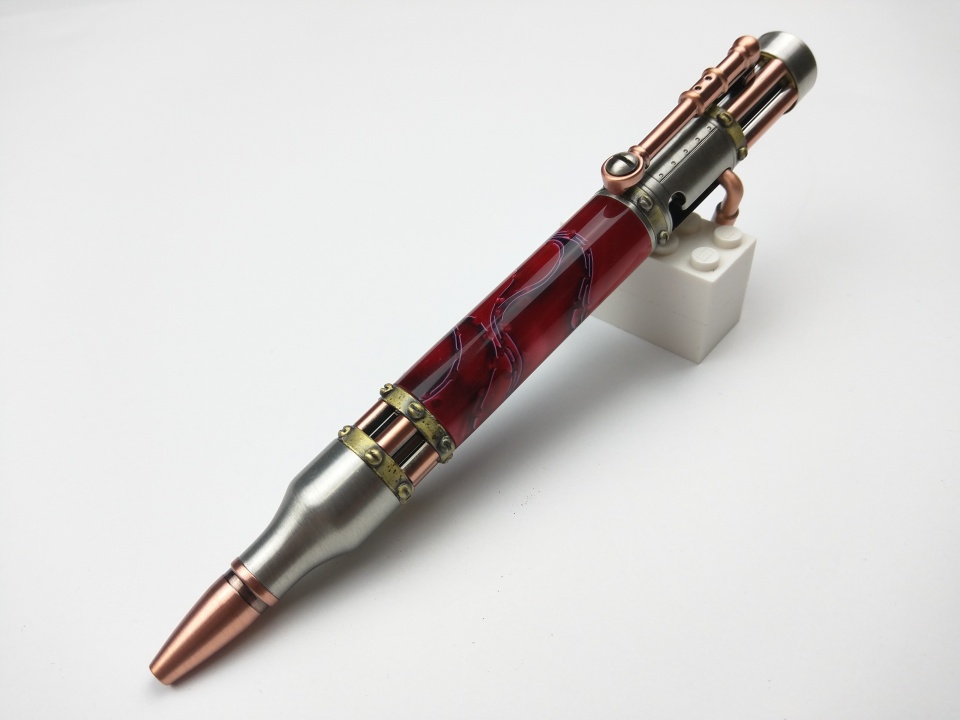 Strawberry mesh with the Steampunk and Ebony with the Deer Hunter. The Ebony comes out nearly black after the CA finish is on it.