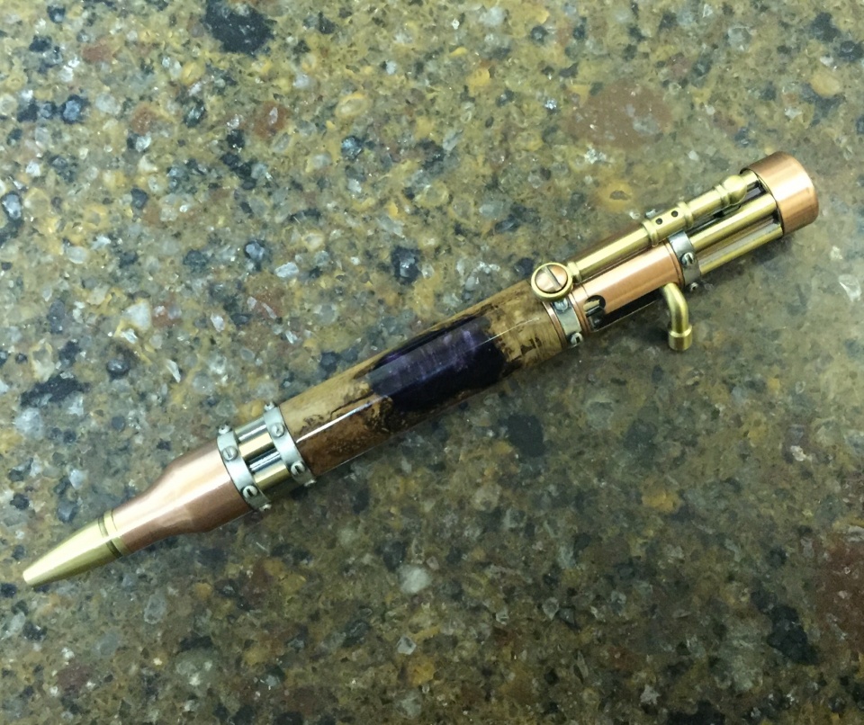 Due to moving over the past year or so I haven't had much time for pen making, much less to post a pic. I had a chance to play a bit today and thought I would post a quick picture. PSI Steampunk Kit using a TurnTex Spanish Oak Burl blank. -Matt