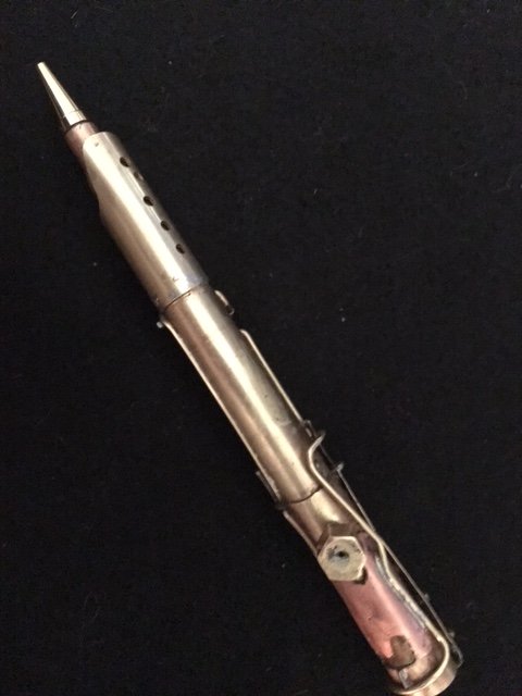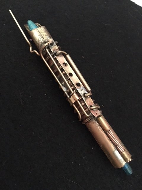 Alternatively, you can leave it looking more of a mess, and even add more to give it the aged, used and beaten up look, which is very popular for steampunk. Either way, lead based solder is poisonous, and is considered a cause of cancer, so you really should seal your creations as much as possible in some kind of safe encasement, such as a clear epoxy or polyresin... silmar or alumilite work too. This would definitely also preserve your weathered appearance, if that's the look you choose. (Even if you use the modern silver based or "plumbing safe" solder, it still contains a large amount of tin, and bronze contains appreciable amounts of lead, if you use any. Better to be safe, than sorry.)