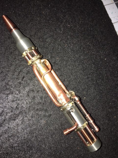 Already mentioned above that you found some electrical solder... it's fairly cheap stuff. You won't be needing the "silver solder" and the currently safer "plumbing safe" stuff that they want to charge an arm and a leg for, as your pen should stay safely out of the mouth of the recipient... On the other hand, you may want to print up a "lead content disclaimer" notice, if you plan to sell your pen in California....