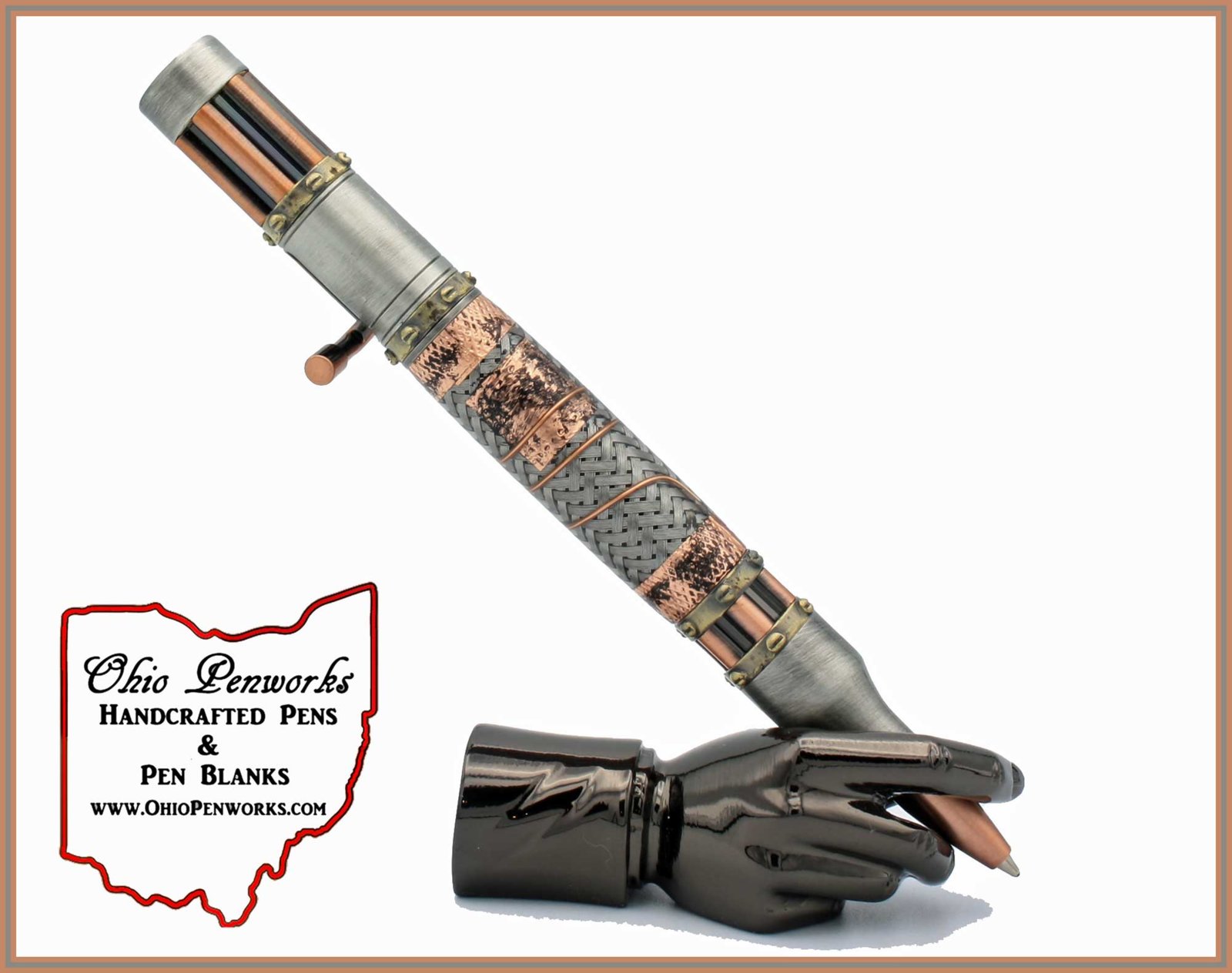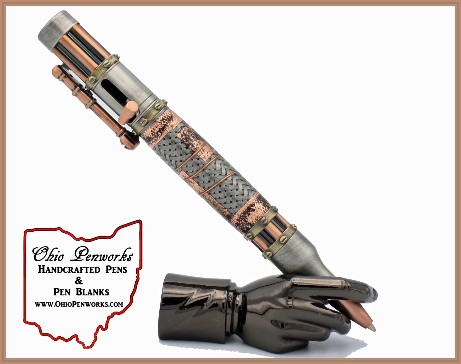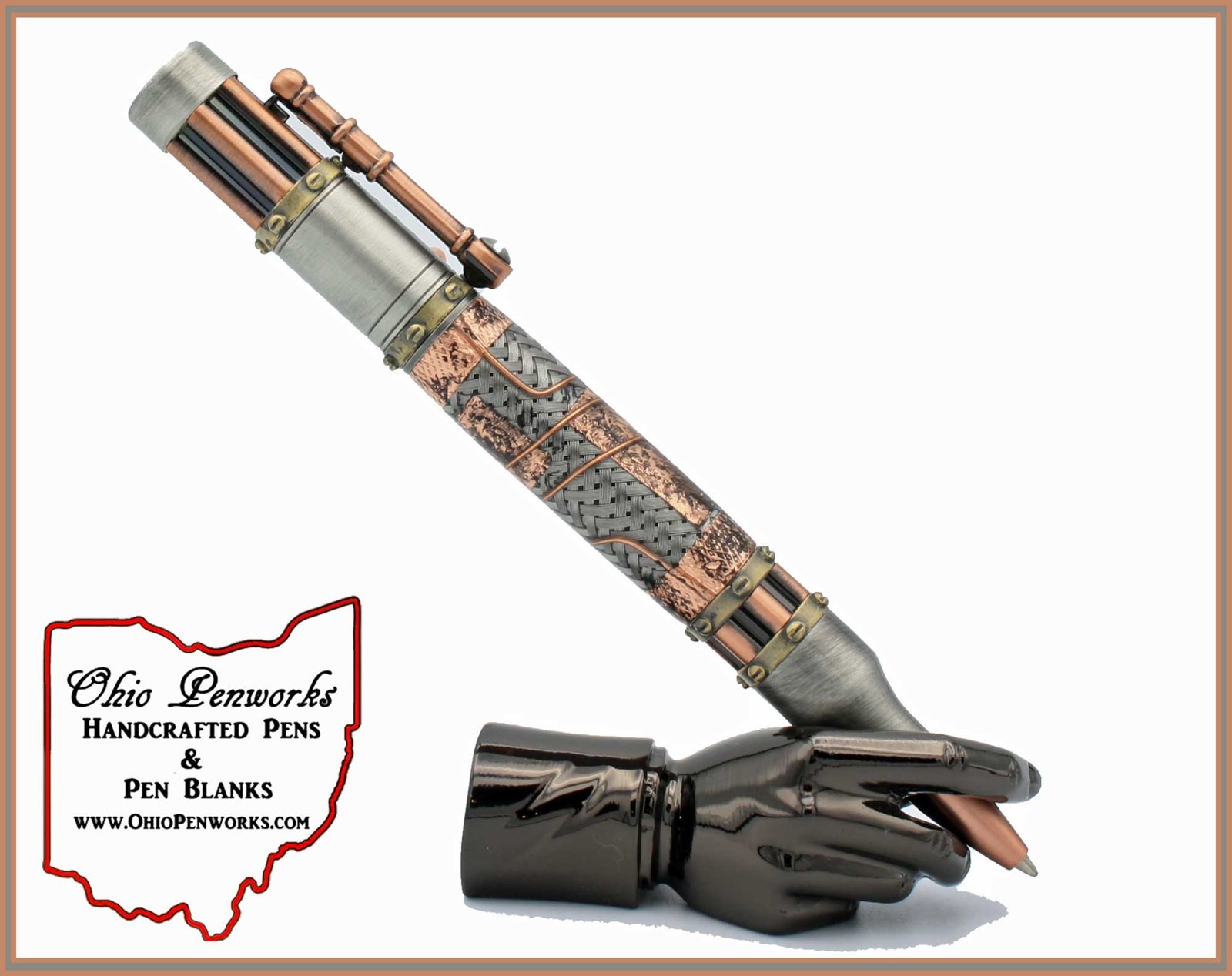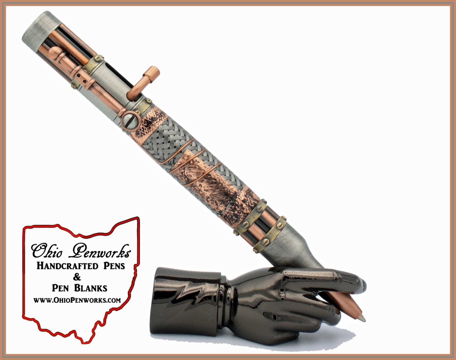 Here is an Antique Pewter and Antique Copper Steampunk kit with an @m4skinner steampunk blank. I've made several pens with Tom's blanks, they are always well received!