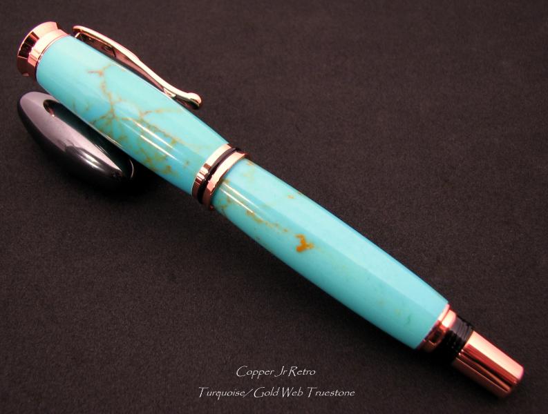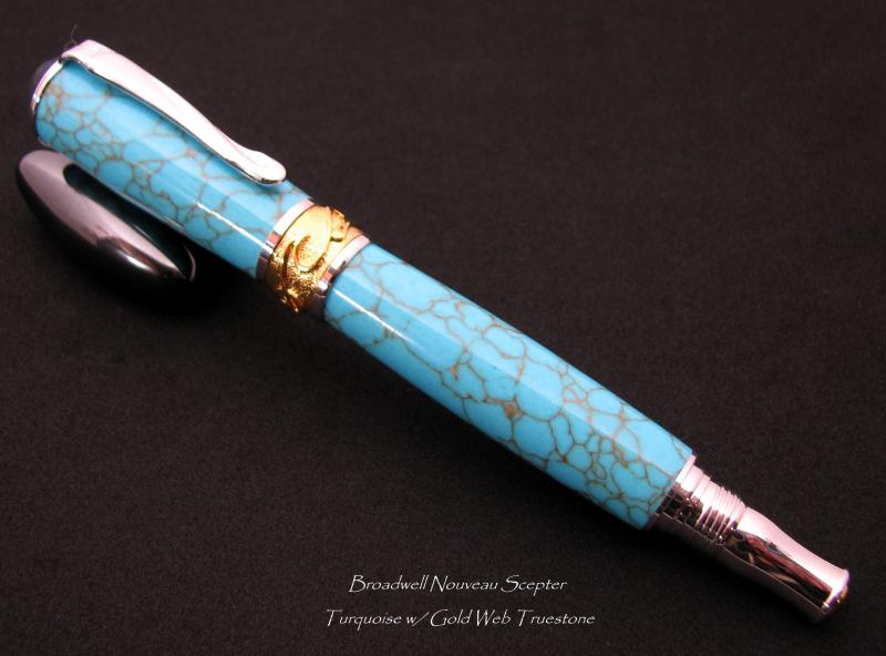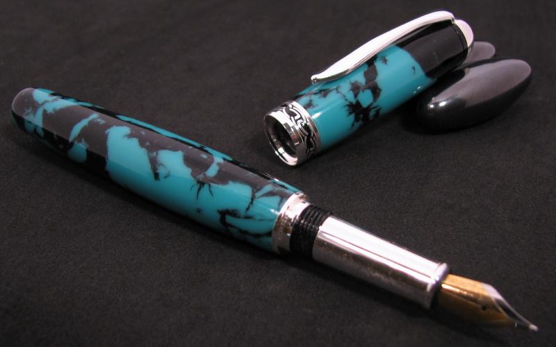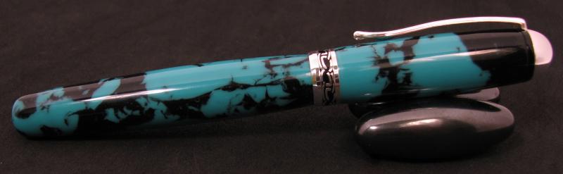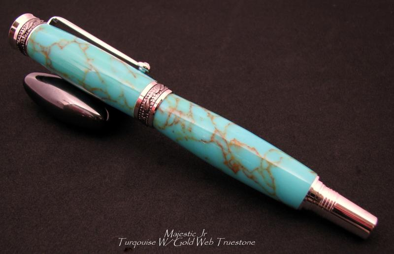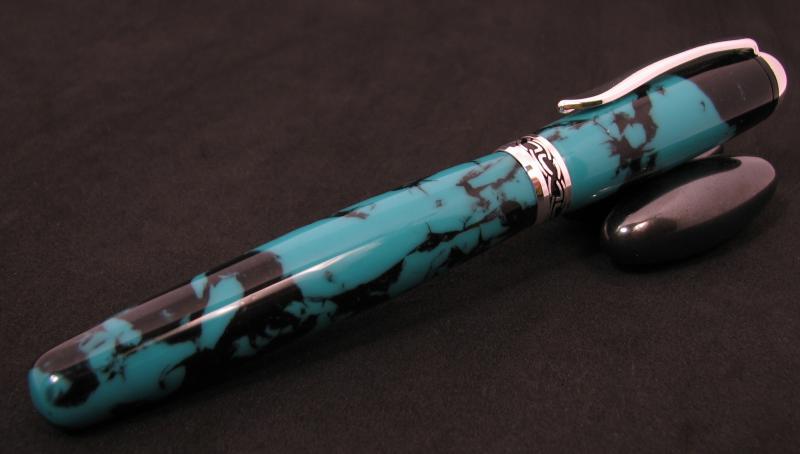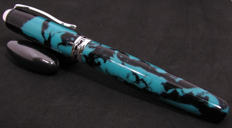 The pen itself has more green in it like turquoise . I cold not get the camera to duplicate the colors.