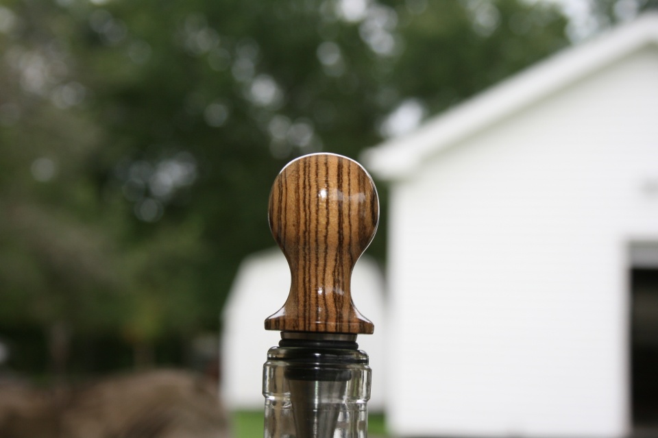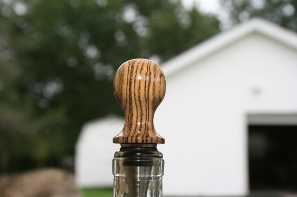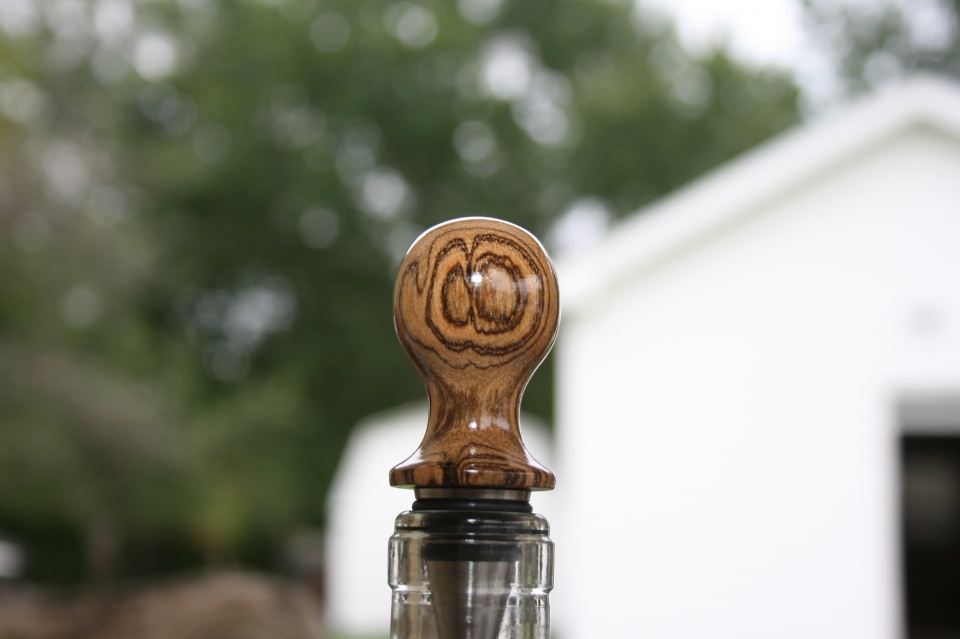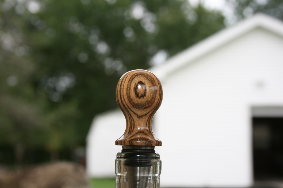 I'm not sure just what to call the shape of this stopper. I was going for the look of a balloon but I got to a point stopped because I did not want to take any more wood away. The blank is Bocote and it has some Amazing grain that I want to preserve. Evelyn and I saw the same thing in the first and forth picture. Crazy eyes and a eye in the back of the head. I like the shape of this stopper but I really love the Amazing grain. All C&C are welcome