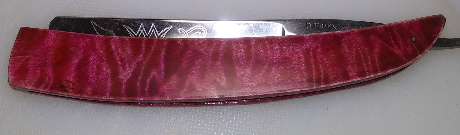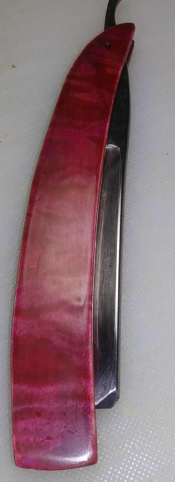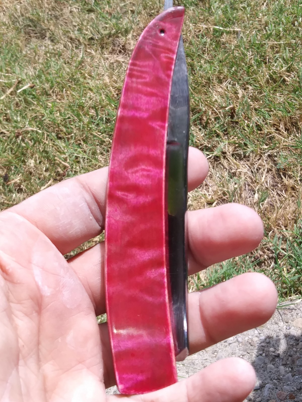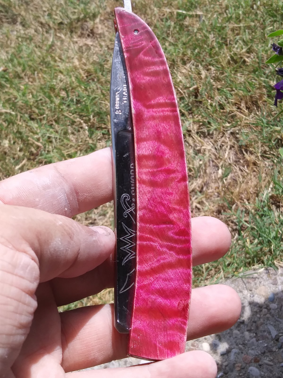 Playing with cactus juice and extreme pink. This has been a labor of love. About 5 months so far on this razor. No power tools were harmed in the making! All hand tools 😀
