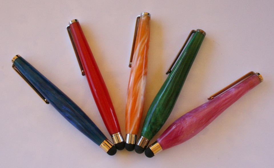 I made these stylus for our grandkids for Christmas. They are in their favorite color. Going one from left to right (oldest to youngest) they get fatter which Evelyn and I think will be better for smaller hands. The blanks are by Fred (PTownsubbie) he gave them to us at one of the meeting of Hampton Roads Penturners. Mike (mikespenturningz) sent me the kits. We'll have to show the younger one just how to us them. All C&C are welcome.