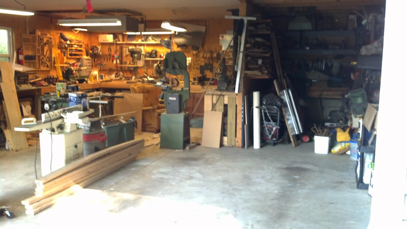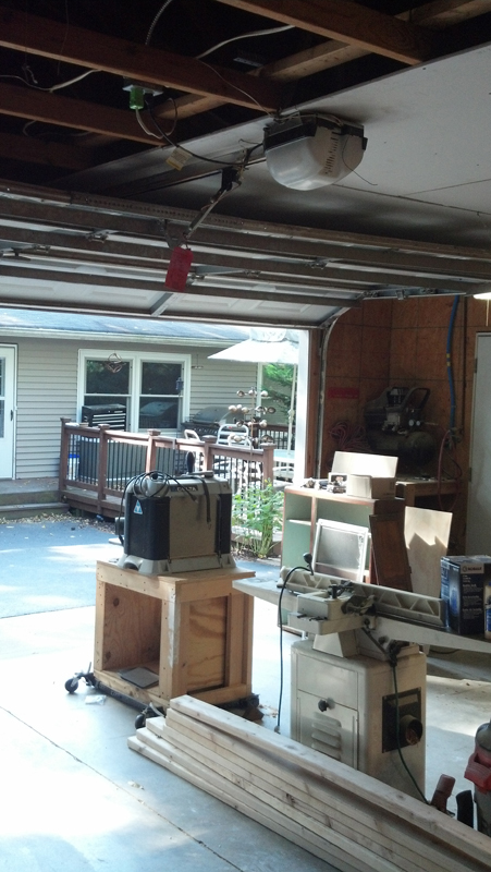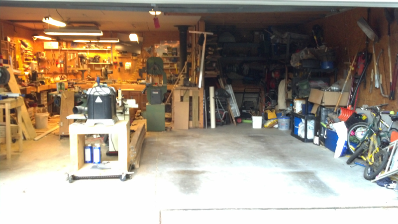 We have an oversized 2 car garage but it only has one 18' door. My shop lives in 1/2 and my wife's van, yard equipment, etc. lives on the other side. I have the ceiling over the shop drywalled but not the part over the other side. My wife would like a wall put up to keep projects from spilling over to her side of the garage (when making bookcases, mantles, etc. assembly suddenly moves to where there's more space.