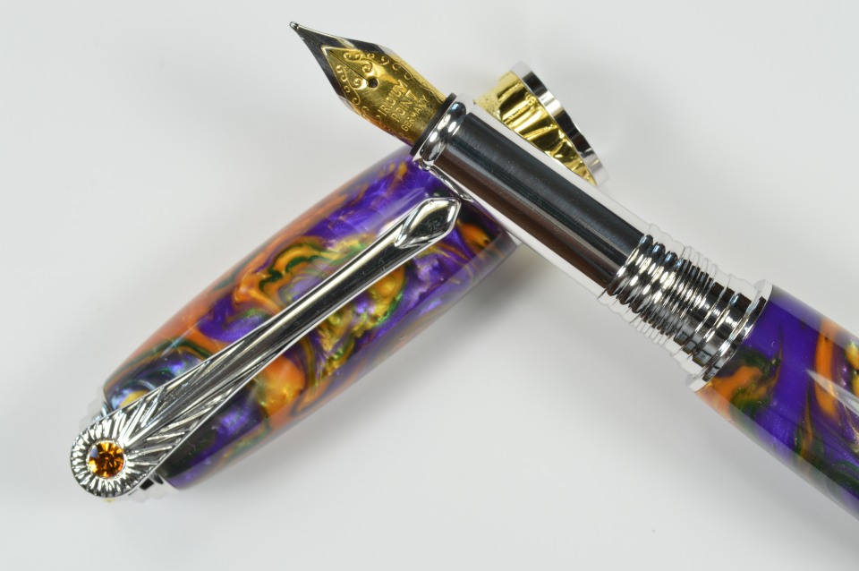Here are a couple more EXTREMLY colorful fountain pens! Both Art Deco's.
