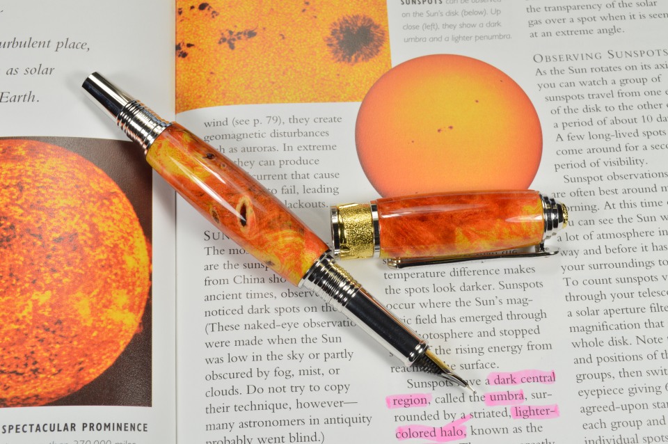 Ten minutes ago, I would have told you that I didn't like the art deco pen kits. These pens may have changed my mind--especially the sunspot one. I work in satellite communications, and sunspots are generally bad news for us. I like your version much better!
