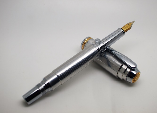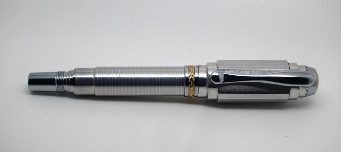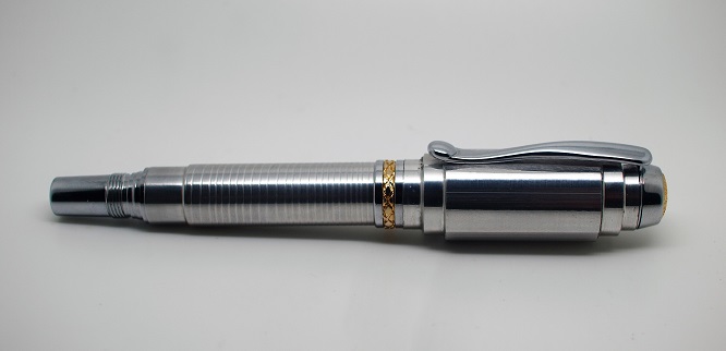 I revised my earlier attempt at an Aluminium Alpha Fountain pen. Made similar spiral along body of pen and the cap is Octagonal with art deco style steps. I have called it "Supersonic"