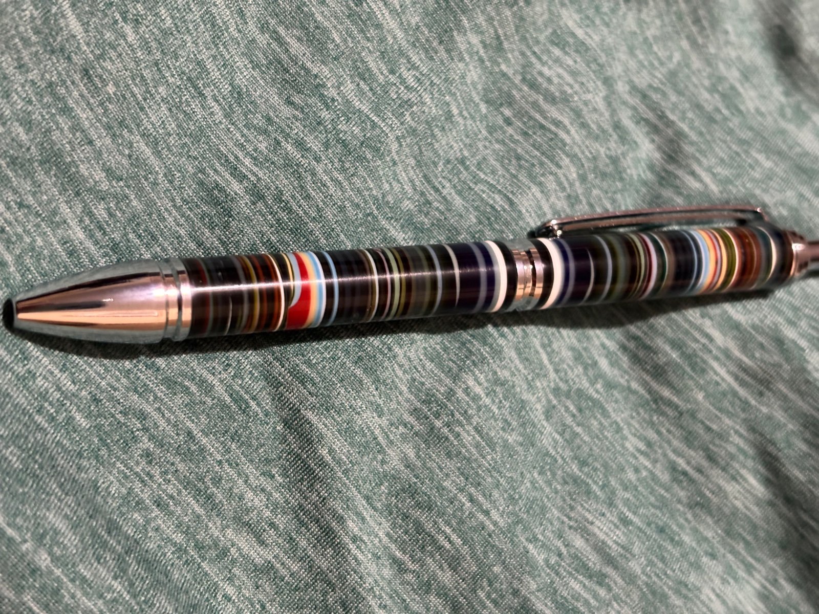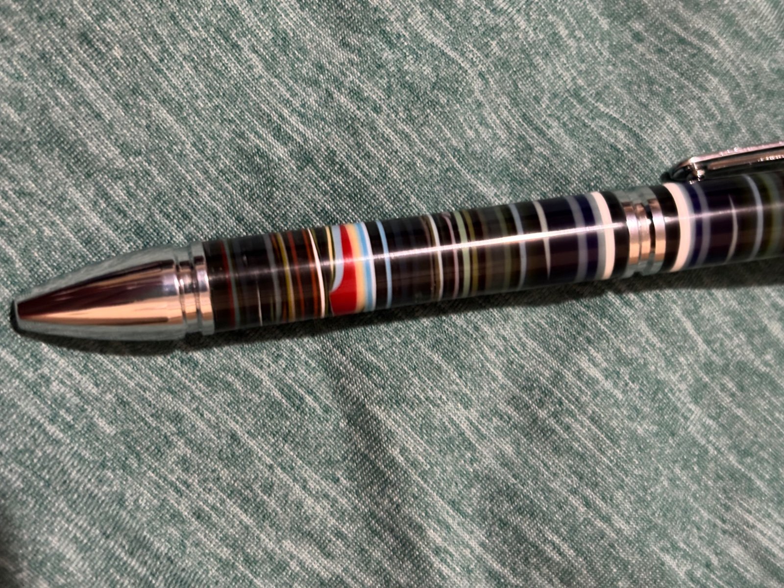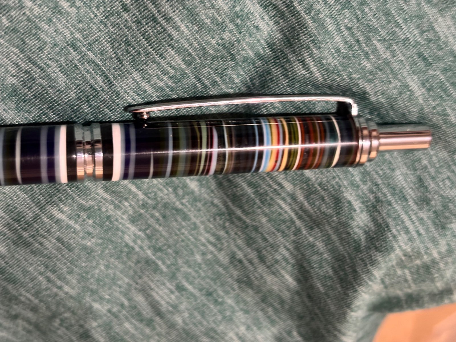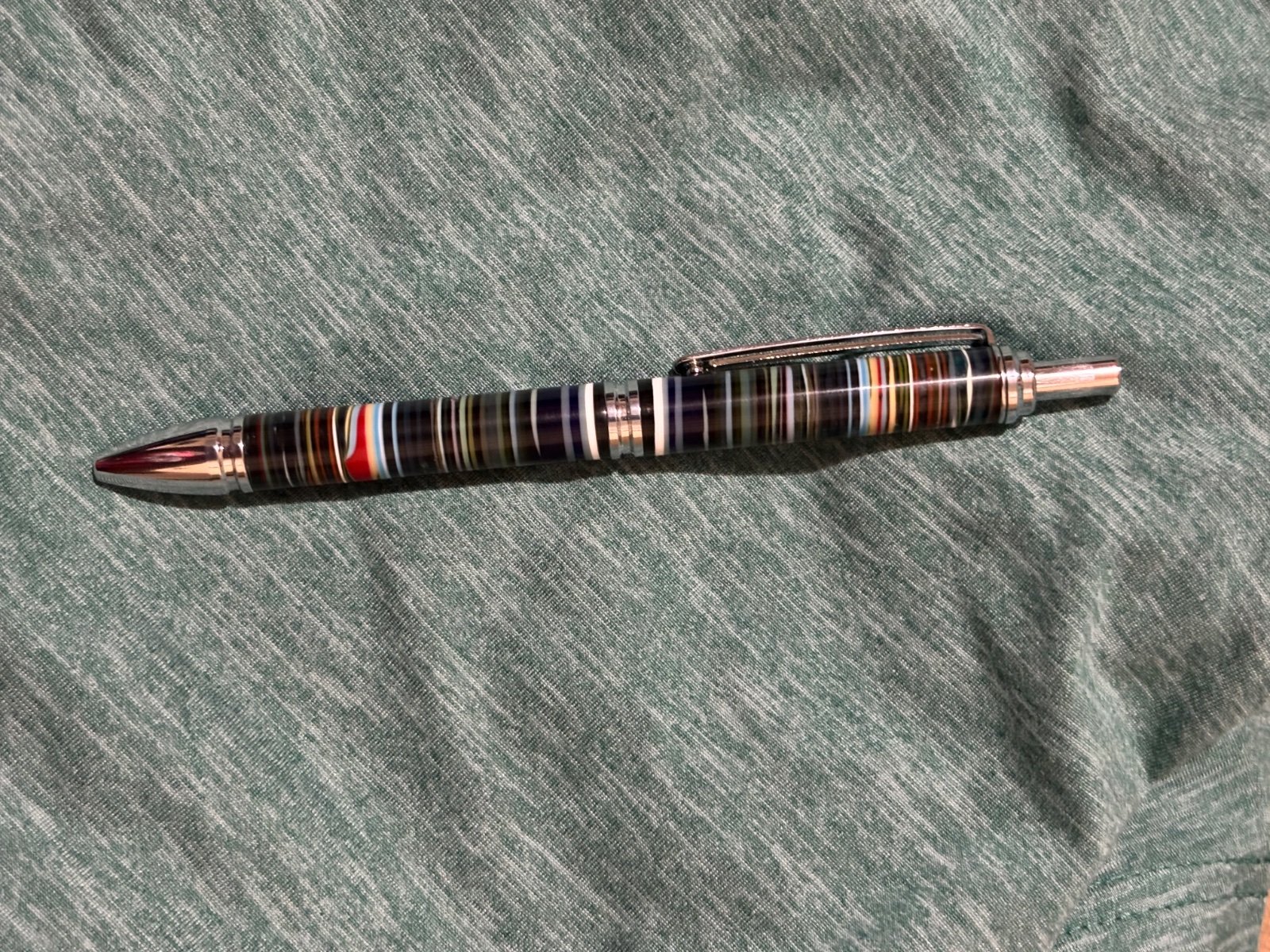 I was lucky enough to have a chunk of Surfite that was thick enough for this slimline pro edc. I like the look of the layers stacked upright and with two identical pieces I had the pattern branch out from the center band towards the nib and clip. Thanks for looking!