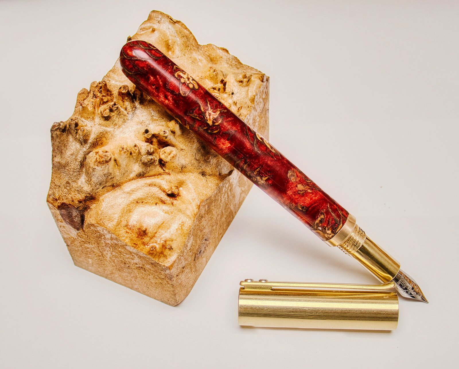 Tried a Raw fountain pen. Blank is a mini pinecone from Exotic Blanks. I was surprised how smooth the nib wrote. I had planned to use a good nib from my fountain pen supplies – no need. Because I had read how heavy the cap was, I made a closed end pen.