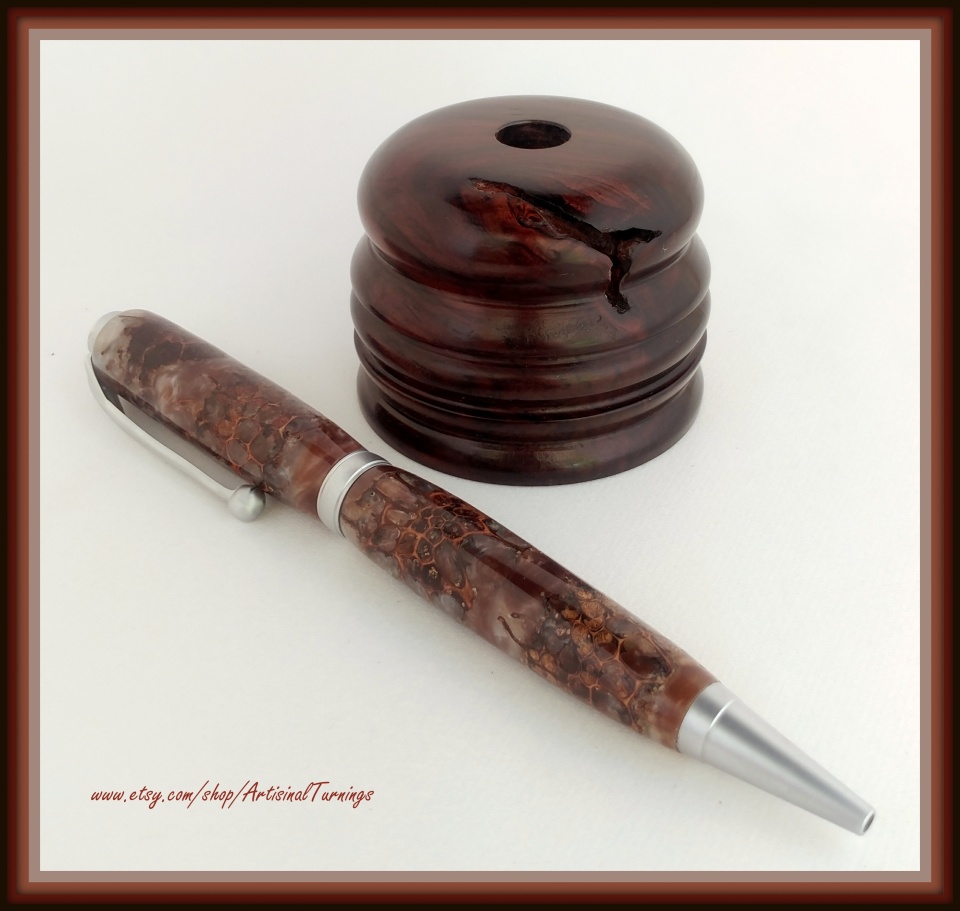 Great Pairing of the Pen and Stand. Beautiful Sweetgum Pod Blank, Excellent Profile, Fit and Finish. Congratulations, Brian.