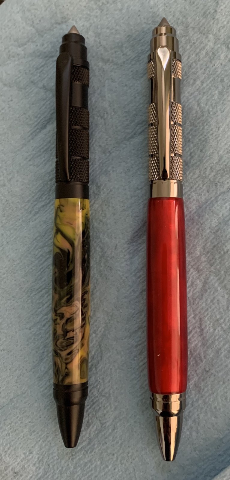 That is funny. If I ever pulled that out to open a window, my wife would ask me if I was writing a "PLEASE HELP" sign. Hey, if one is in a jam, it beats breaking a window with your elbow! I think they are pretty cool.That is a nice pen. I'll take my Ka-bar for breaking a car window over the one on the pen kit. Maybe it's supposed to be used for breaking into a wine bottle![]()