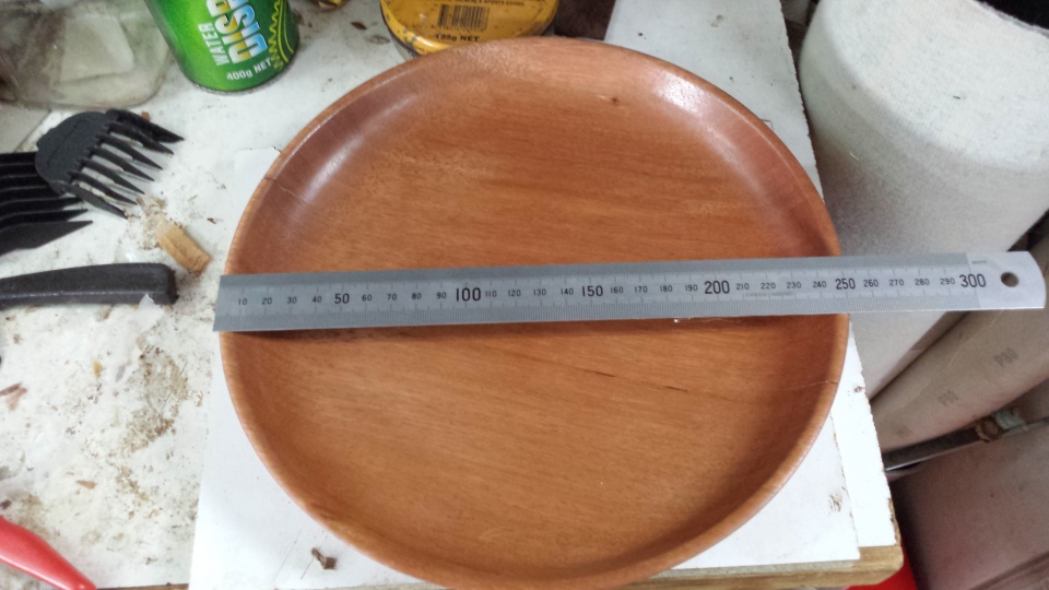 It ended up as a 250*37 (10 * 1 15/32") footed shallow bowl, with a consistent 8 - 9 mm (5/16-11/32") thickness. Yes I know, not particularly thin, but I like my bowls to be useful. Sanded to 400# and EEE. I have not applied any finish yet.