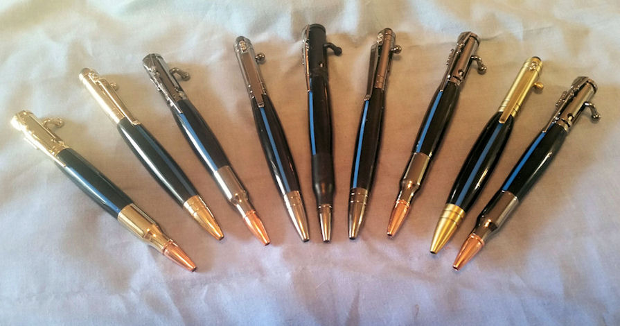Turned 9 TBL pens for our local officers. Five were Bolt Action and 4 were Bolt Action Tec. Blanks were from Berea. Could get one of each style pen from each blank. Have turned a dozen of these so far. Need to order more of the blanks next time I order from Berea. They were a hit.