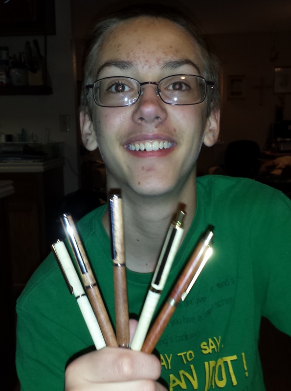 My son decided that he wanted to make pens or pencils for five of his teachers. Since this is teacher appreciation week at his school he decided that he had to finish them tonight.