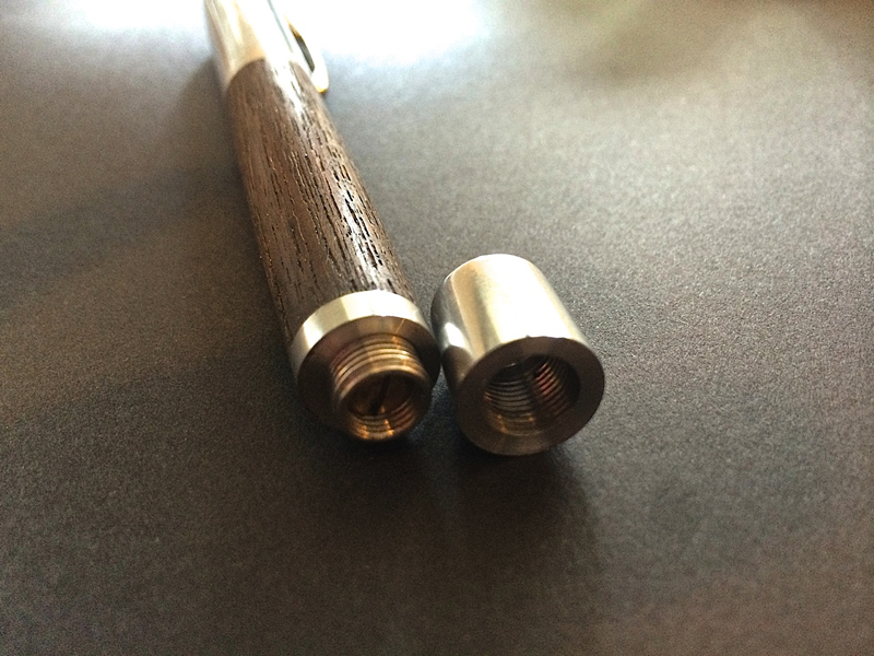 Hi Justin.... the first ring, at the end of the barrel is to cap the wood. So when you take off the end cap to place a new refill... the wood is not exposed and to protect the edge of the wood from damage. It is threaded and then a drop of red thread locker is applied to make it semi permanent.