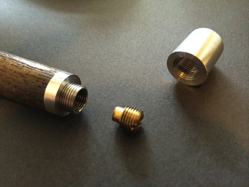 Sure Justin, The first photo shows the back end of the barrel, in the second... the end cap is unscrewed a bit, the third shows the screw inside the barrel and the end cap... and the 4th shows the endcap.. the screw.... and the barrel. It's actually a very simple design... and not even my own original idea... Im just not that imaginative.