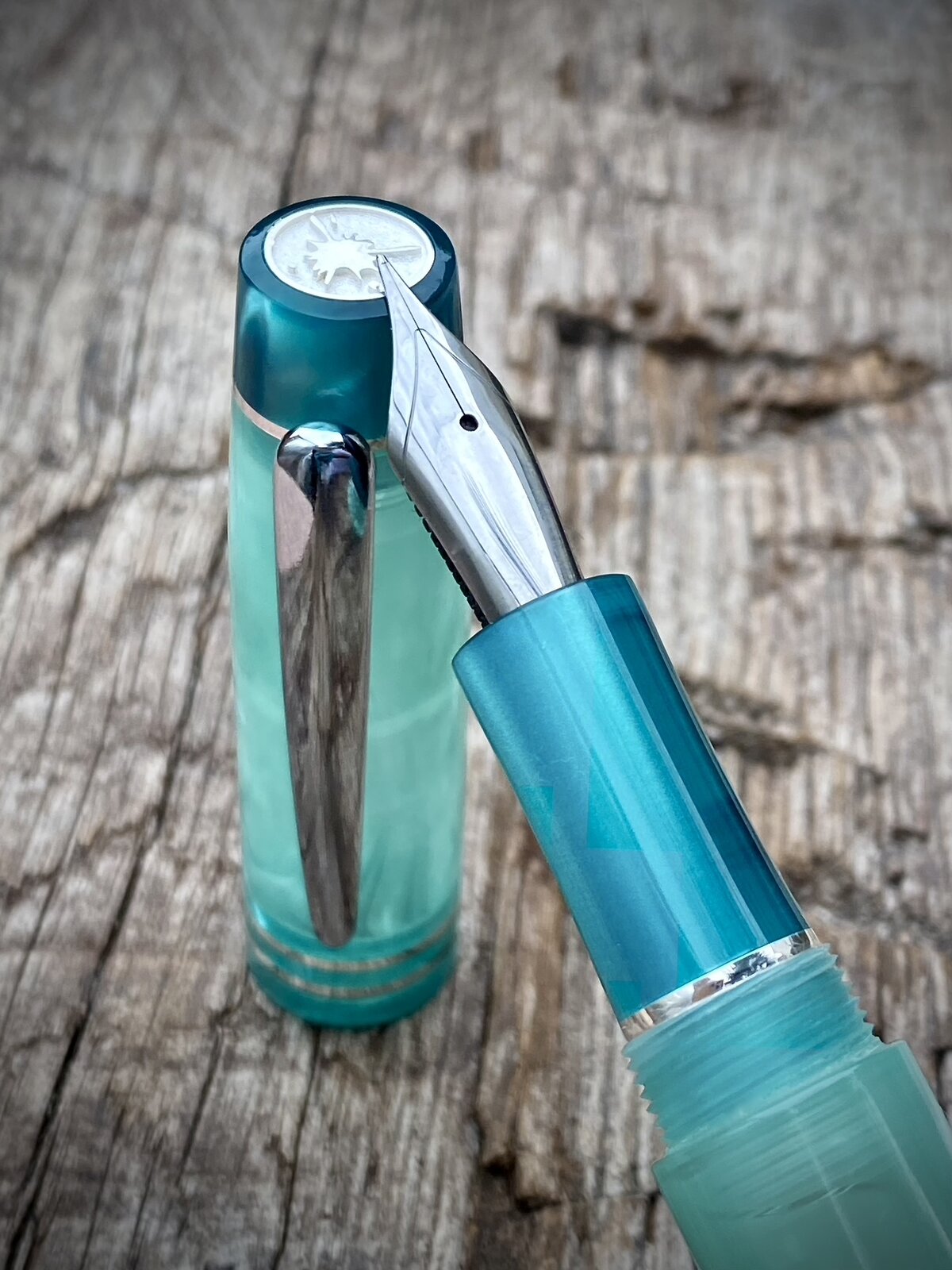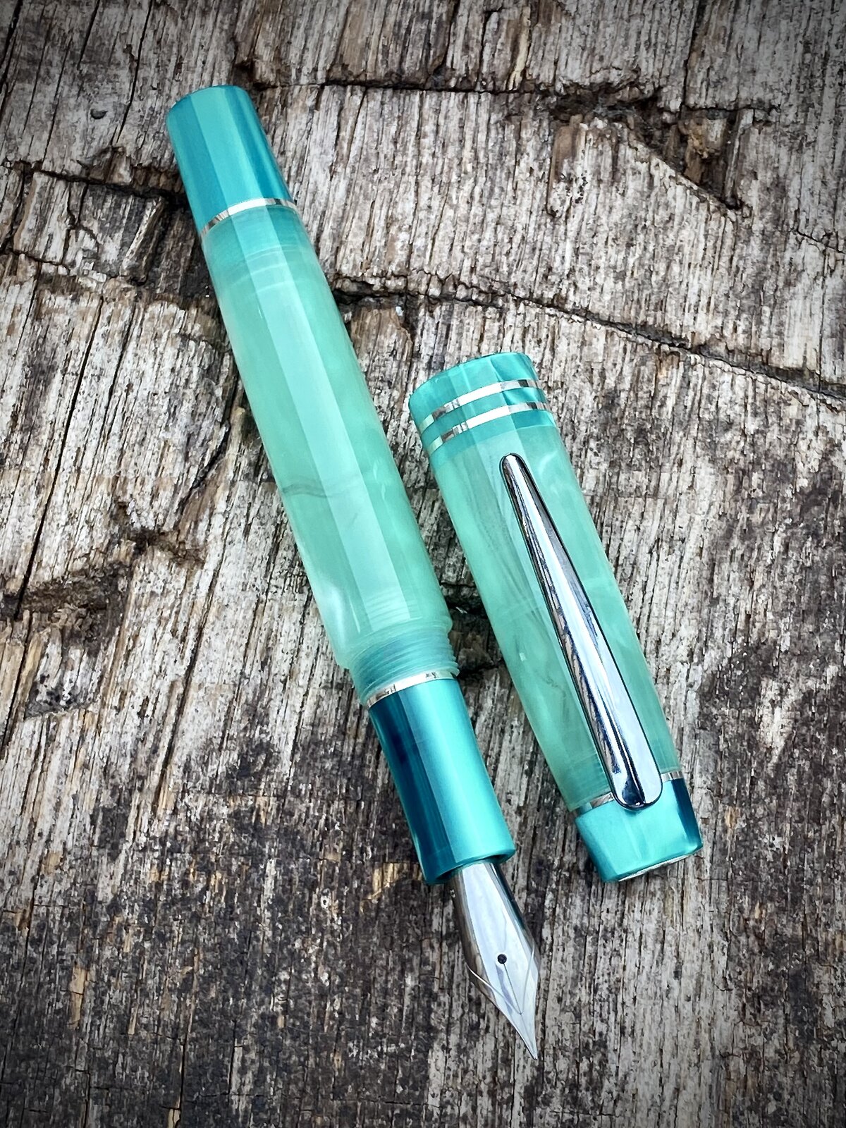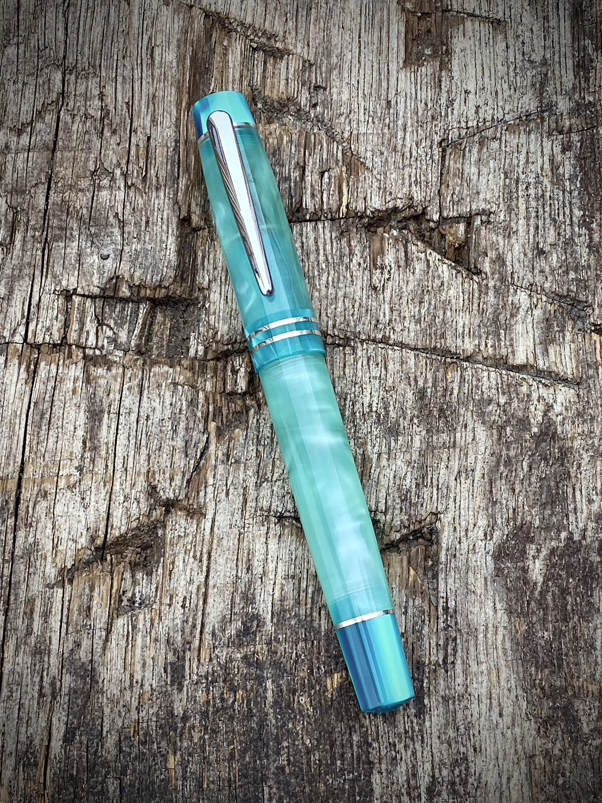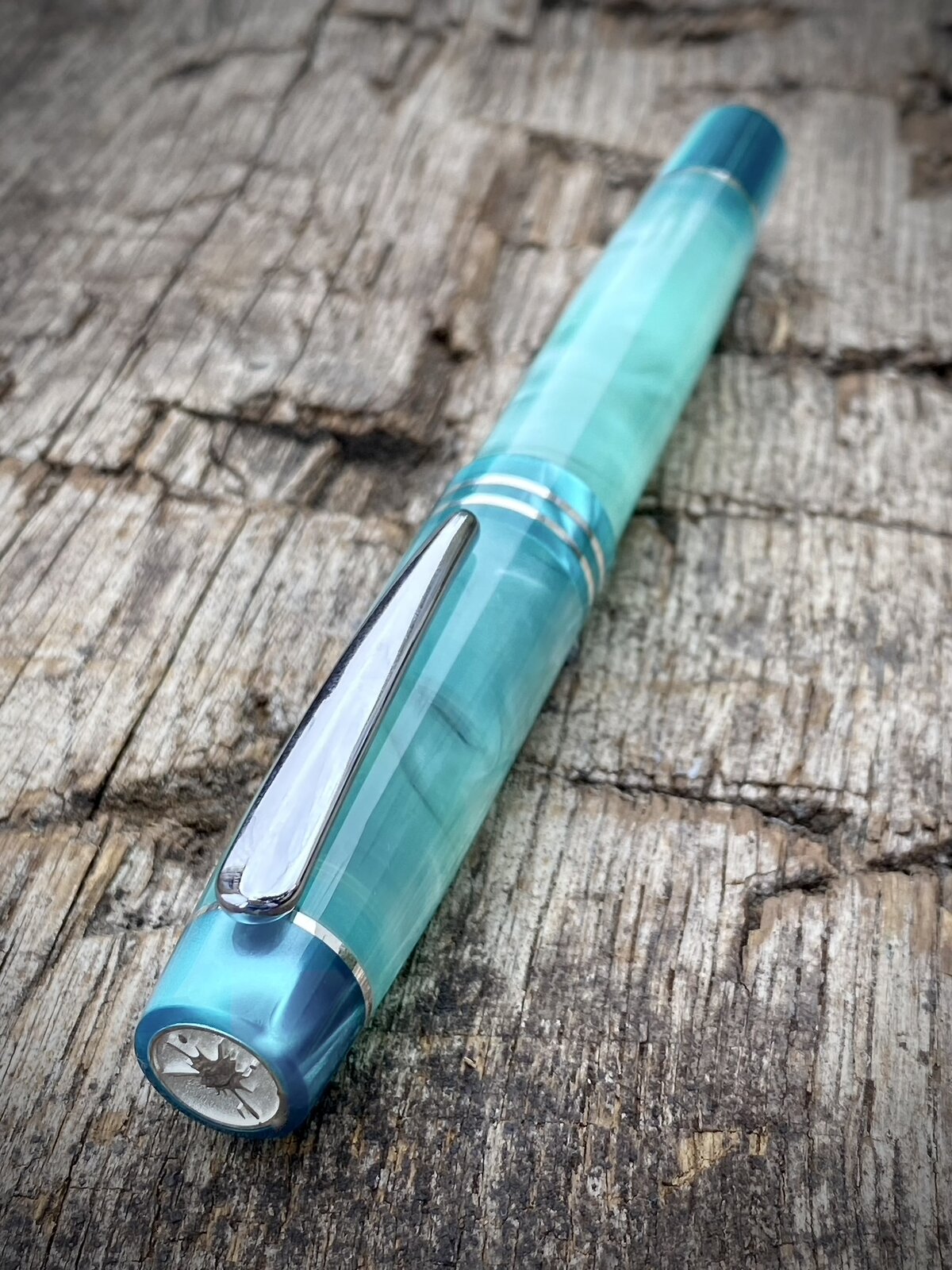 For the first time for a while I decided to add centre-band rings to the cap of a pen. There are a few ways to do this. I turn down the area at the opening and make the small sleeves and rings to create the effect.