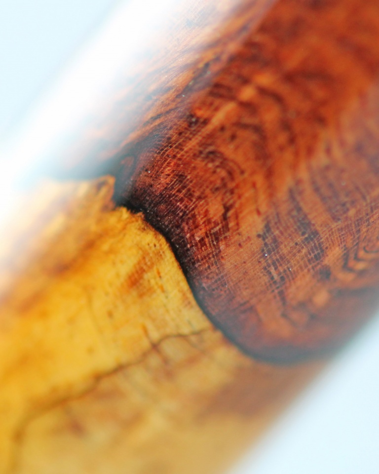 This blank was only an eighth wider than the bushings. Drilling and turning was done very carefully so as not to kill the blank or make it unusable for the Zen kit. Plus, that sapwood was like mush, so I had to keep coating in CA to stop it falling apart.
