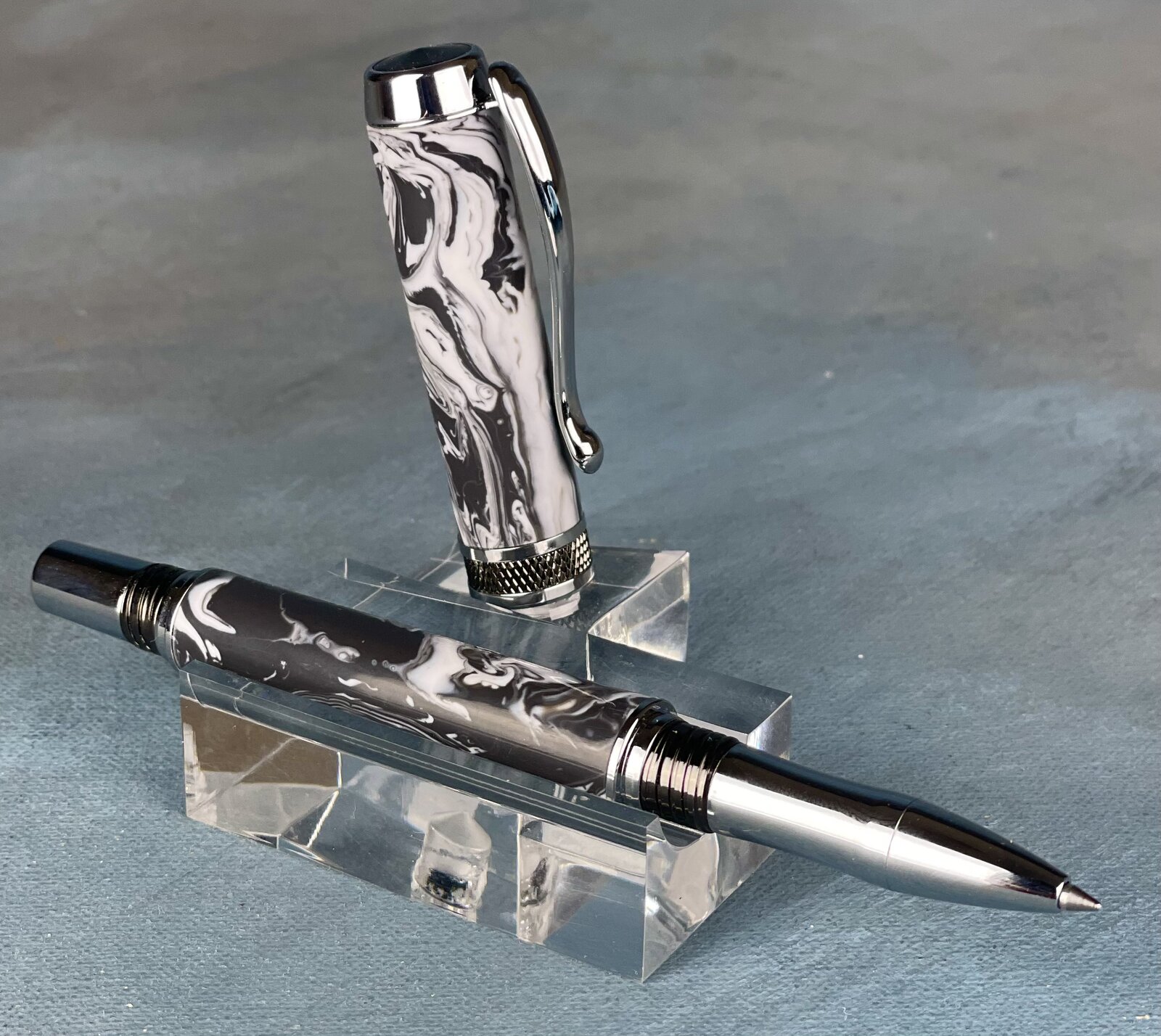 Diamond Knurl Rollerball in gunmetal and chrome looked good to me with this blank. We will call it "Fifty shades of gray".