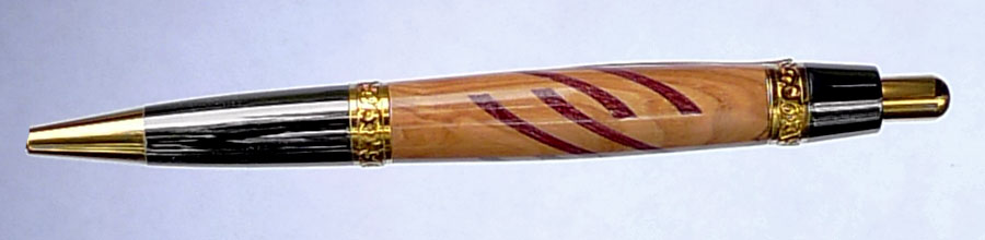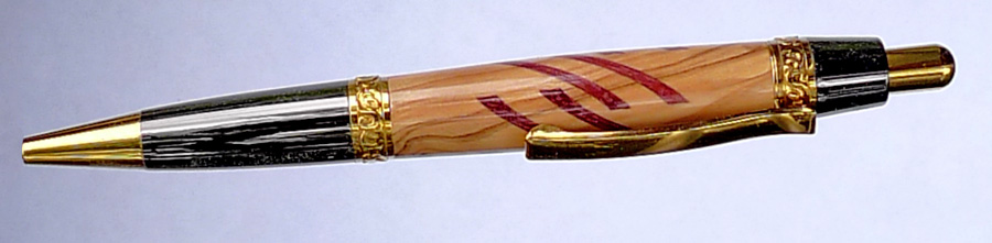 Dressed the Le Roi Elegant in a segmented blank of Olive Wood and Blood wood.