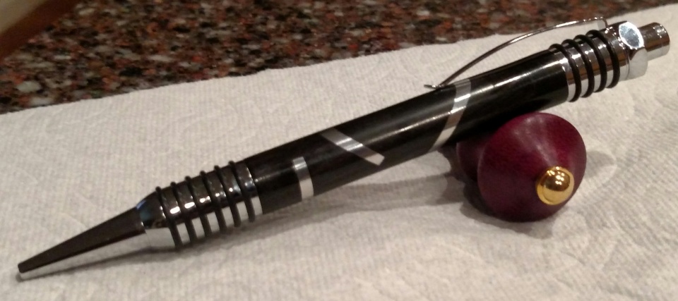 Thanks for all the suggestions on clamping and gluing up segmented blanks. Here is my first attempt after viewing all the suggestions. It isn't perfect but I am happy with it. No real pattern I just made some random cuts and inserted the aluminum.