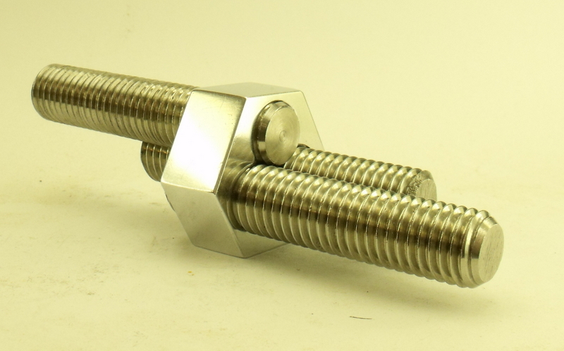 Each stud can screw into the nut independently and the threads from each stud overlap.
