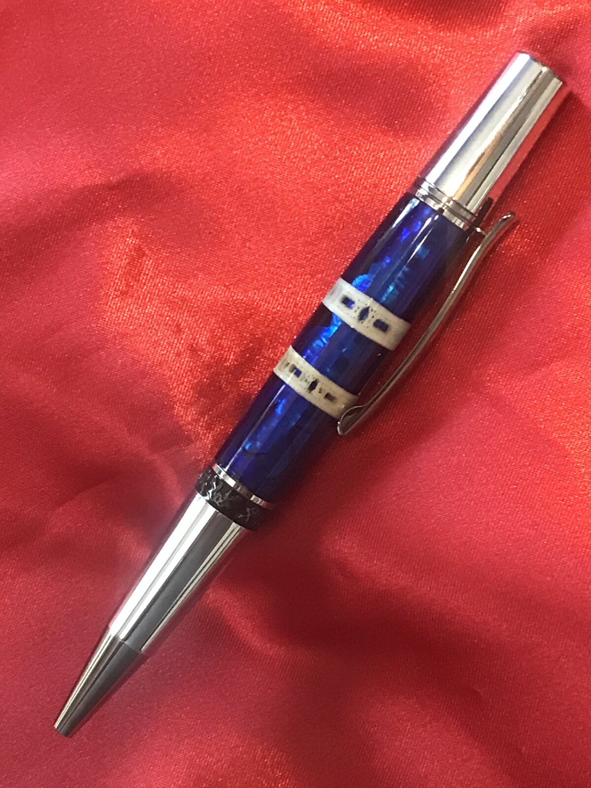 This idea popped into my head a couple of days ago. I'm talking about the combination of materials. The blue is real Abalone Shell with two Shark Vertebrae. I'm very pleased with the way it turned out but I still need to do some tweaking on how the vertebrae are arranged. As always Questions and Comments are Welcome.