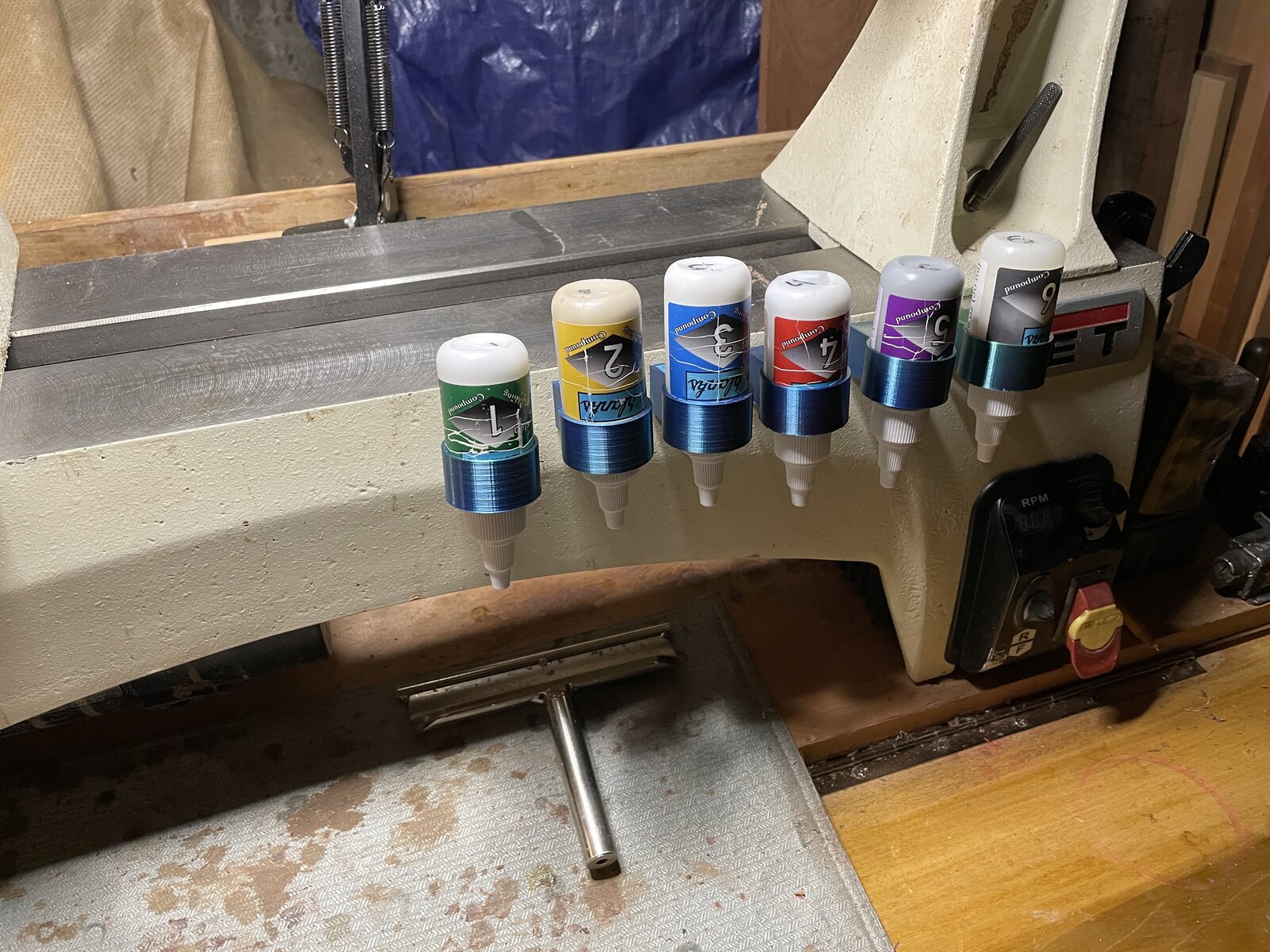 I am starting to learn about 3d modeling and have come up with a jig to solve a shop problem. I am now using Magic Juice from Stadium Pen Blanks. I love the product by the way. It has really improved my finishing of plastics. My garage shop is not heated and I have been shaking the heck out of the little 1oz bottles. That gave me the idea to make a little magnetic holder to keep the bottles inverted. As soon as I figure out how, I will post the file into the library.